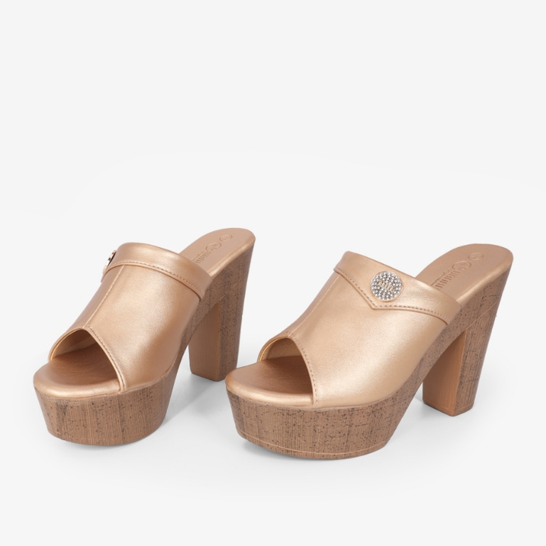 [HCM] Dép Cao Gót Hạnh Dung Quai Bản Đắp HD12298AM ( Màu Đen - Đồng )