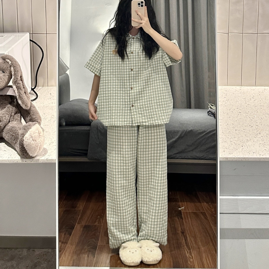 SET BỘ ĐỒ NGỦ DÀI QUẦN DÀI + ÁO TAY NGẮN ÁO FORM RỘNG + QUẦN DÀI YORIS - 8172