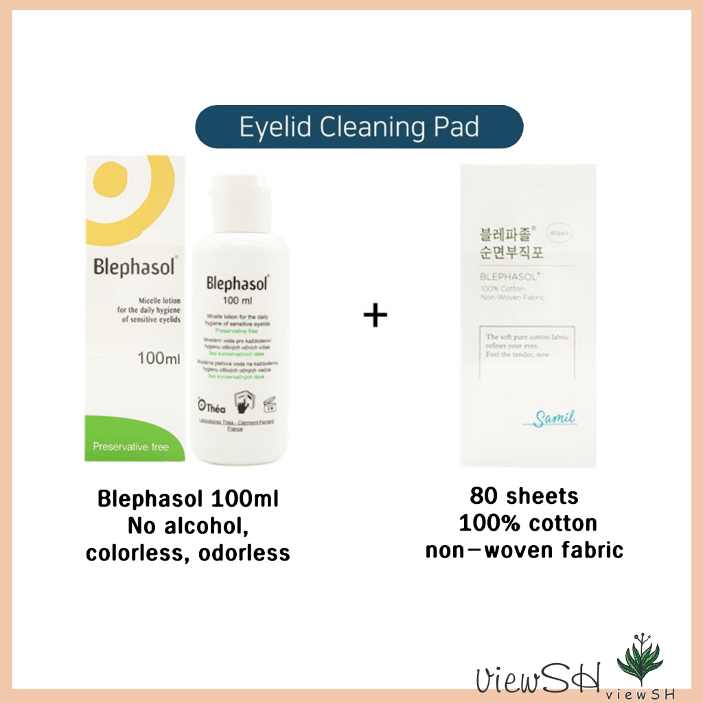 [Blephasol] Tẩy Mắt 100ml + 80 tờ vải không dệt cotton nguyên chất Chất tẩy rửa mắt Mí mắt Clean Eye Stye hội chứng khô mắt