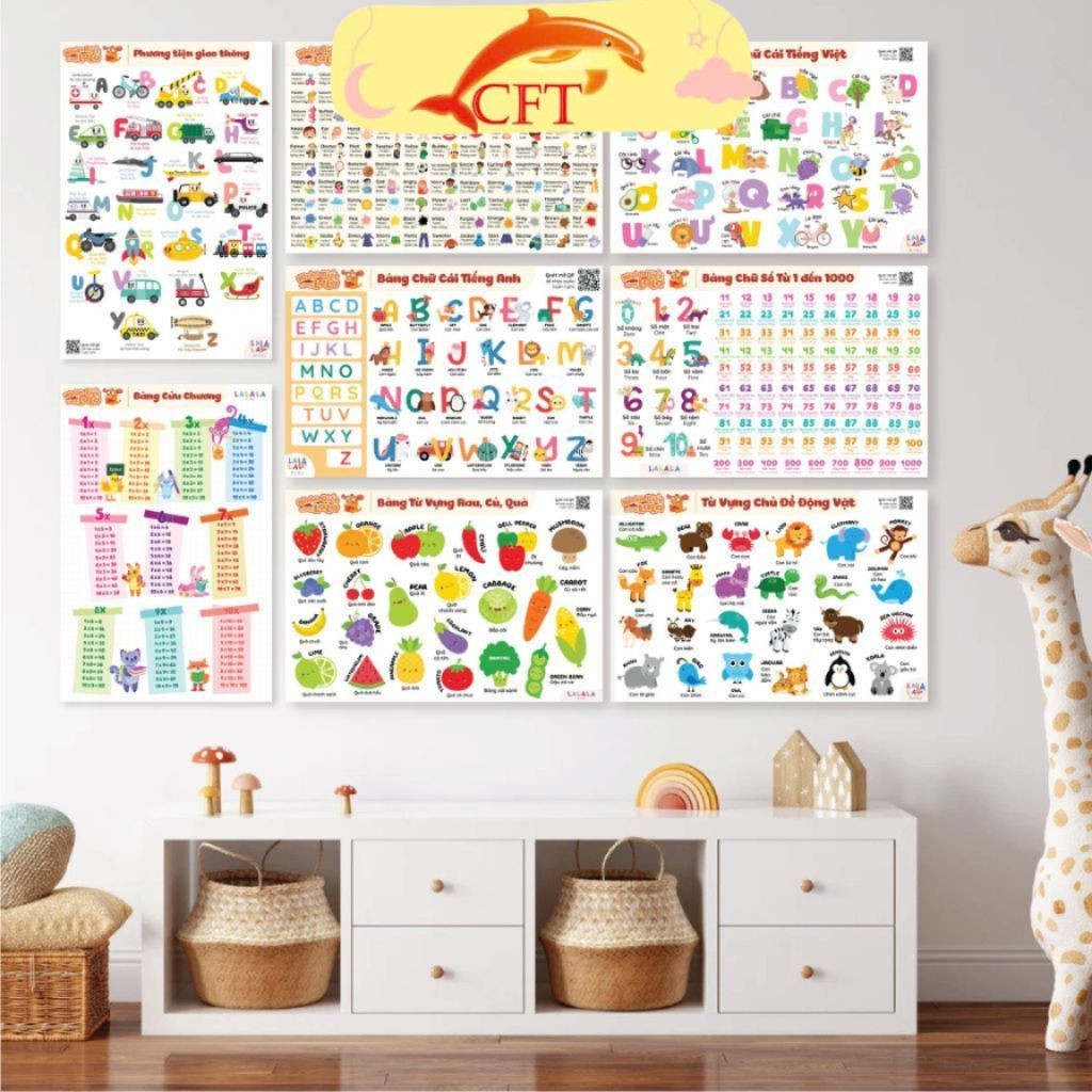 Poster Dán Tường Chữ Cái Tiếng Anh ,Tiếng Việt, Bảng Cửu Chương Và Nhiều Chủ Đề Đa Dạng Cho Bé Học Tập