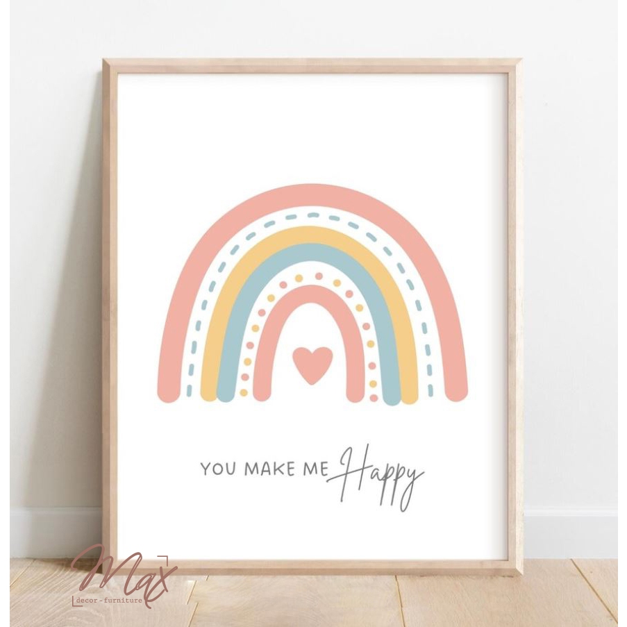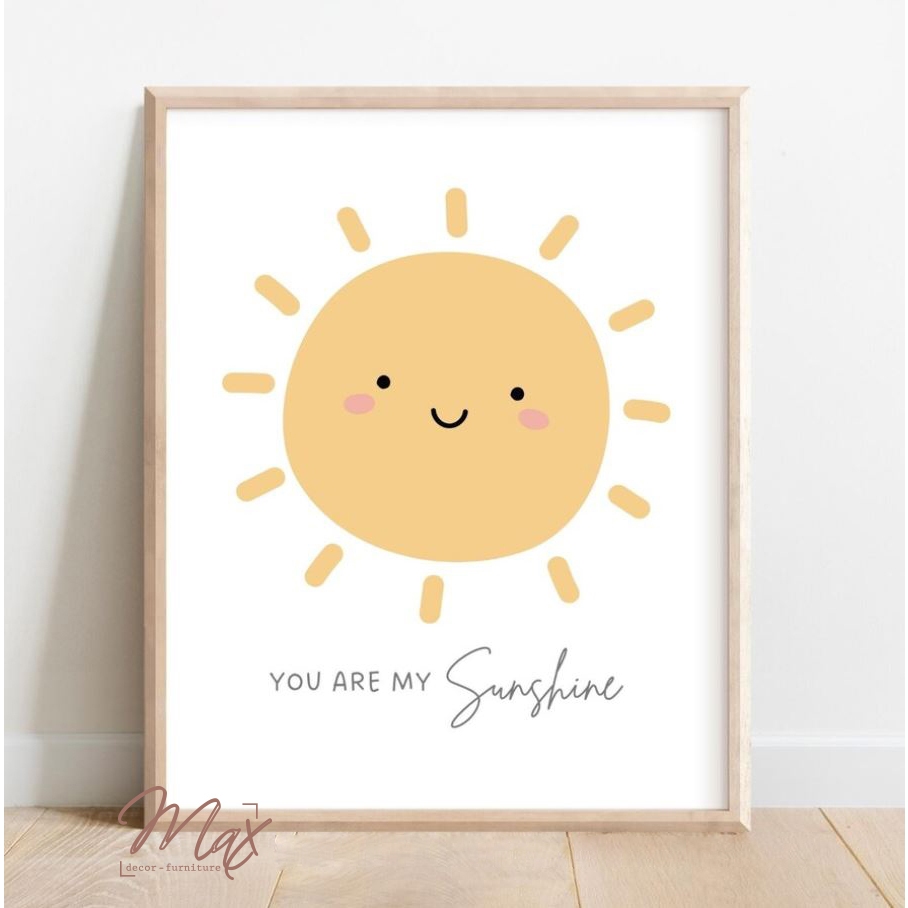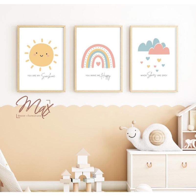 Tranh canvas trang trí phòng trẻ em - chủ đề bé yêu "YOU ARE MY SUN SHINE", mặt trời, đám mây, cầu vồng ngộ nghĩnh