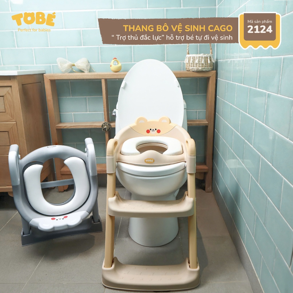 Ghế thang tập ngồi bồn cầu có tay vịn cho bé Cago Pochi chính hãng Tobe vệ sinh an toàn tiện lợi 2125
