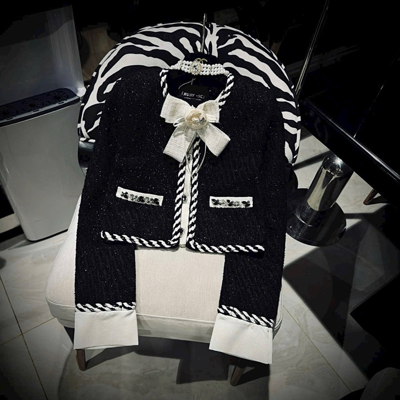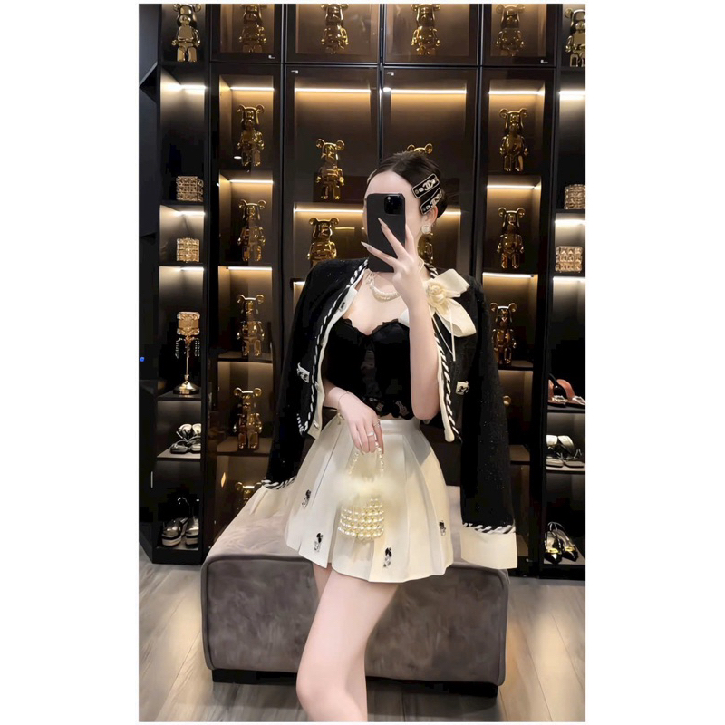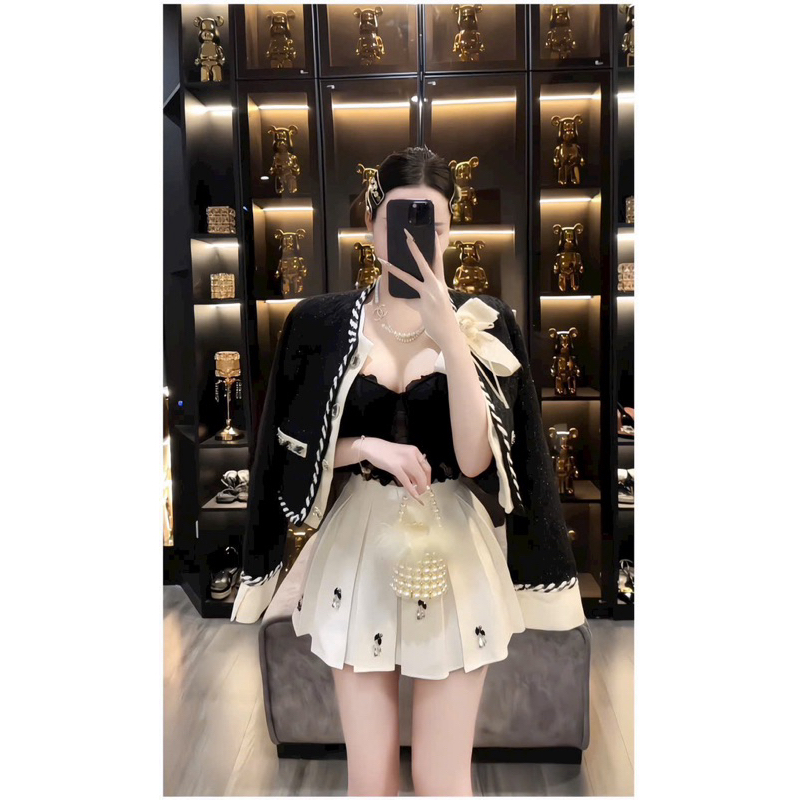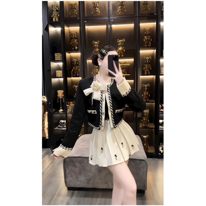 Set áo dạ đính nơ Sc micc cv xếp li Qc