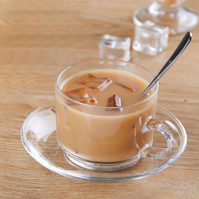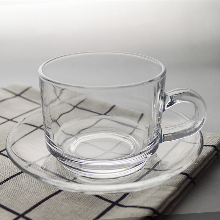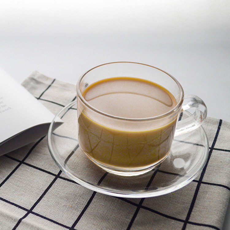 Bộ 6 ly 6 dĩa LOTUS , Bộ 6 tách trà thuỷ tinh bao gồm 6 ly quai thuỷ tinh trơn và 6 dĩa thuỷ tinh trơn cao cấp