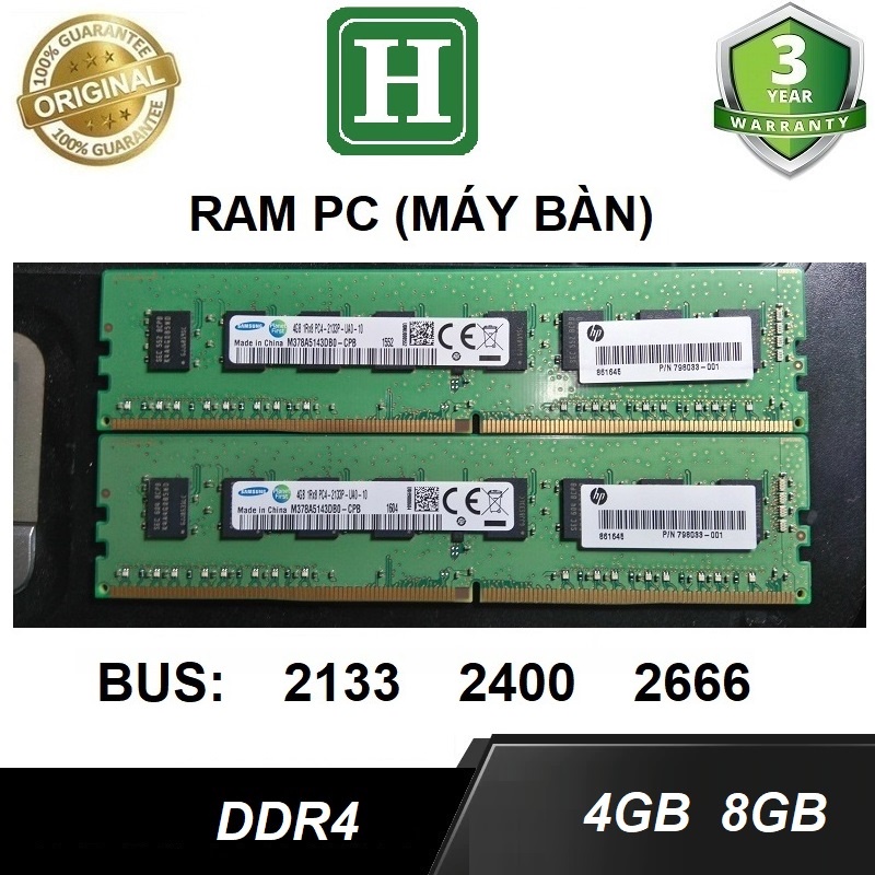 Ram máy bàn, ram PC DDR4 4Gb, 8Gb bus 2133, 2400, 2666, 3200, ram zin máy đồng bộ - bảo hành 3 năm