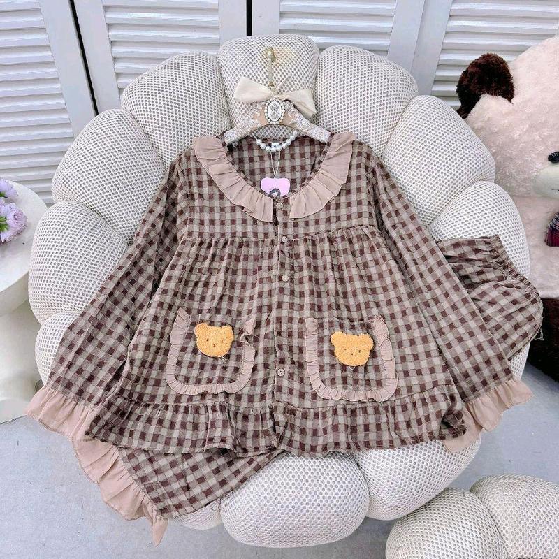 Bigsize 55-80kg Set bộ pijama tiểu thư cổ phối tơ đũi nhung tay dài quần dài 2 túi đính gấu mặc nhà mặc ngủ mềm mát