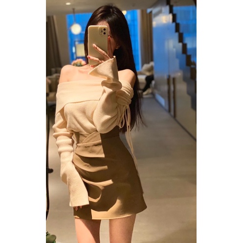 Set đồ nữ áo Len Trễ Vai + Chân Váy, đồ bộ nữ Thu Đông Siêu Nữ tính ( Có bigsize) Có Sẵn- Giao Ngay