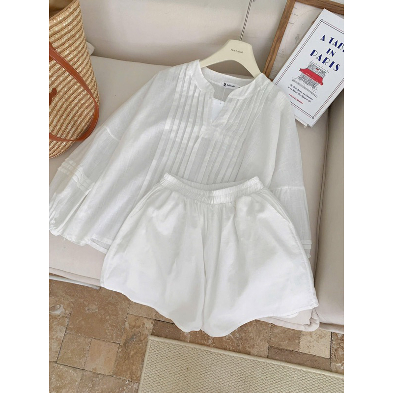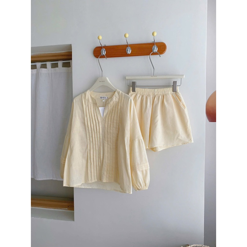 Set bộ đũi linen áo xếp lu form rộng kèm quần 2 lớp