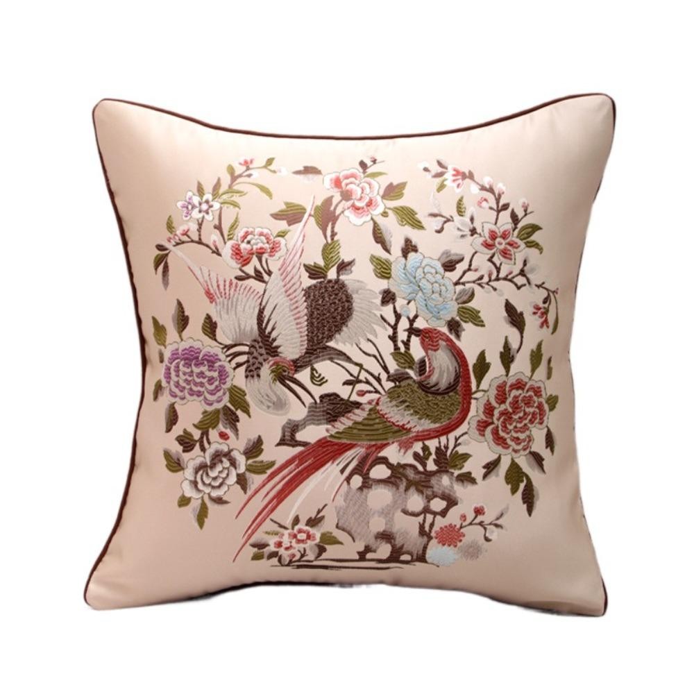 Sutongxue Vỏ Gối Chim Hoa Cổ Điển, Vỏ Gối Thêu Trung Quốc Sang Trọng 45x45cm, Dệt Gia Đình Mềm Mại Hoạt Hình Hình Chữ Nhật Dacron Ném Đệm Dành Cho Người Lớn
