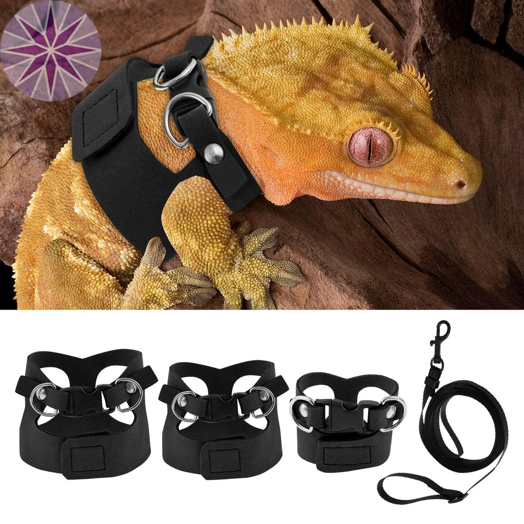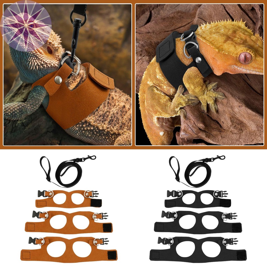 Bộ dây nịt và dây xích rồng râu 3 kích cỡ Dây nịt thằn lằn da có thể điều chỉnh có dây xích cho thằn lằn rồng râu SHOPQJC2479