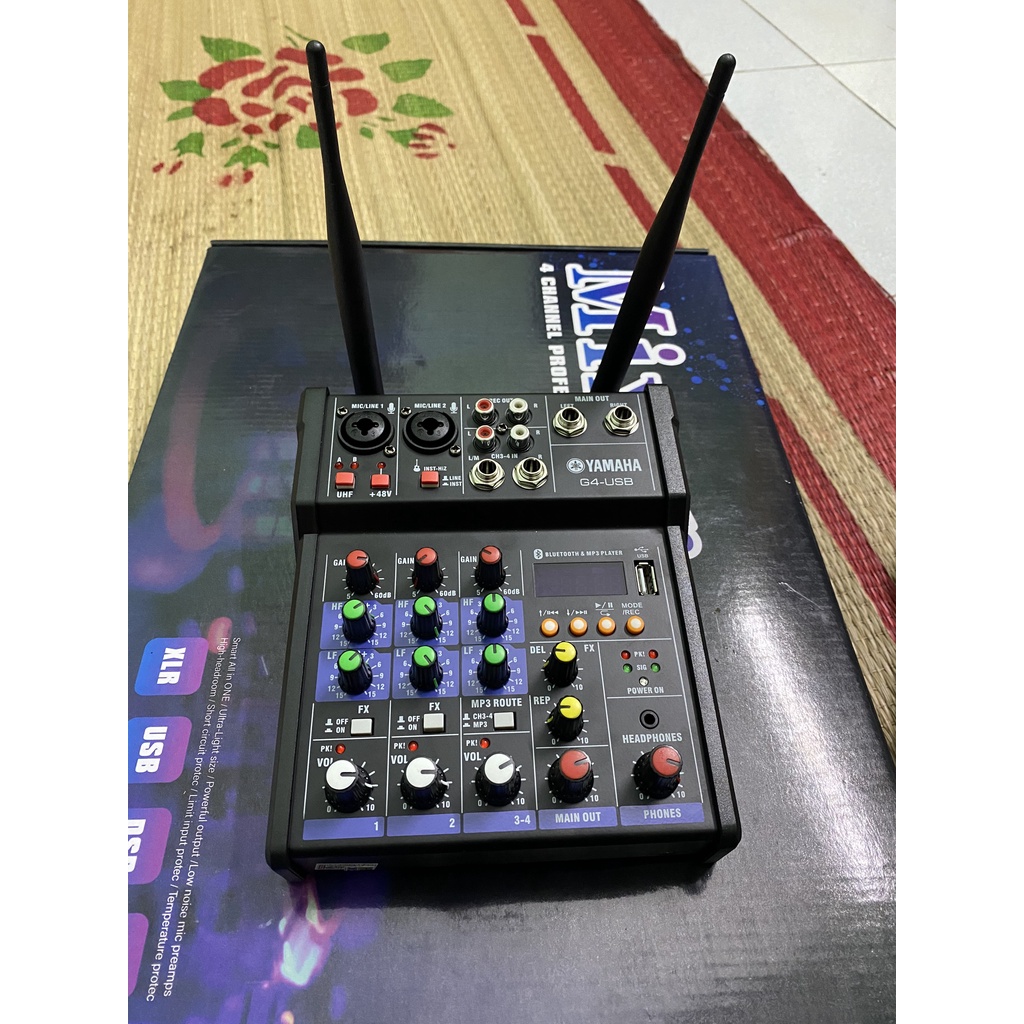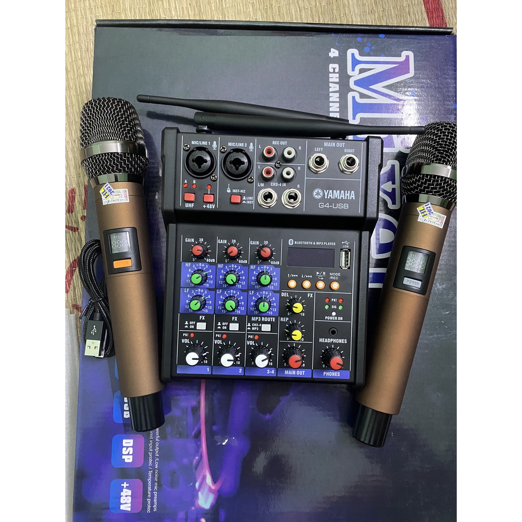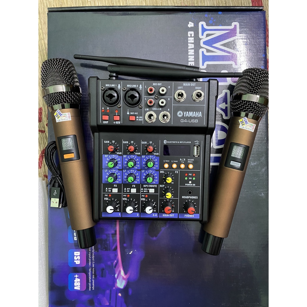 Bộ Mixer Yamaha G4 USB - Bộ trộn âm thanh Mixer Chuyên Karaoke, Livestream, Thu Âm Cao Cấp - Tặng Kèm 2 Micro Không Dây