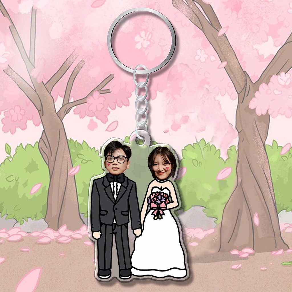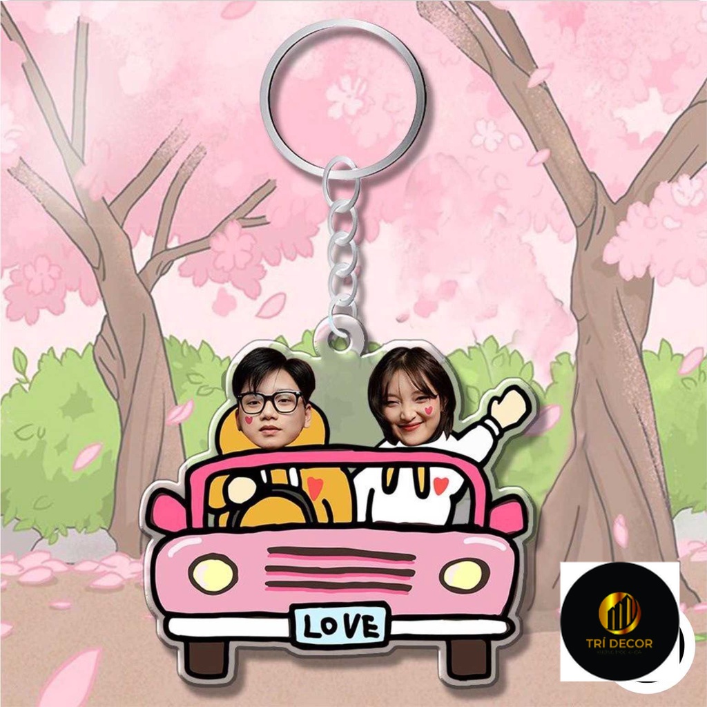 ( QUÀ TẶNG 8/3 ) Móc khóa quà lưu niệm in hình chibi cute cặp đôi theo yêu cầu chất liệu mica - TRÍ DECOR