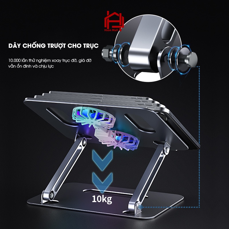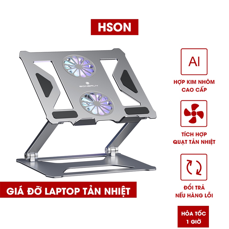 Giá đỡ tản nhiệt laptop macbook, kệ đỡ máy tính ipad nhôm cao cấp để bàn HSON chỉnh góc linh hoạt