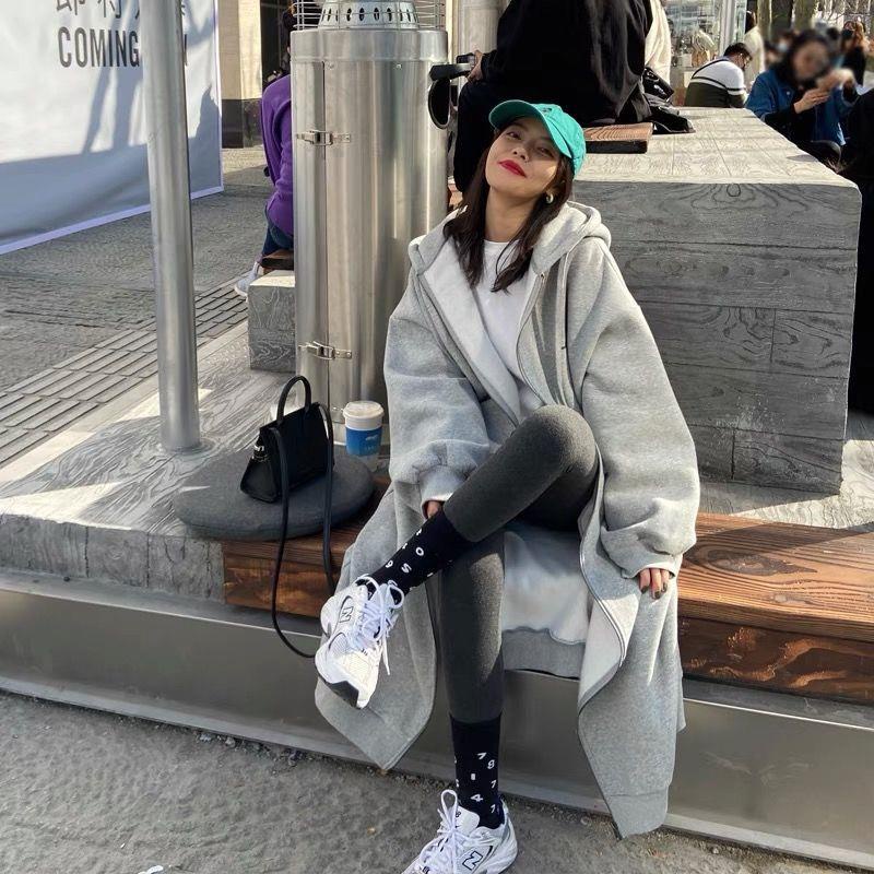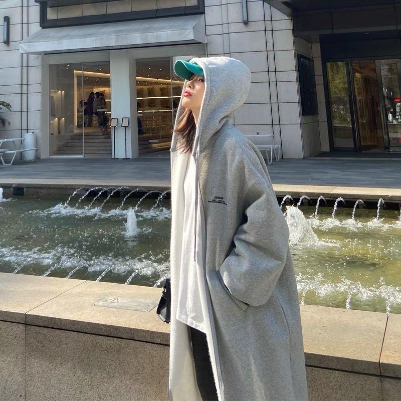 Áo Khoác cardigan Có Mũ Dáng Dài Qua Gối Cỡ Lớn 300 jin plus