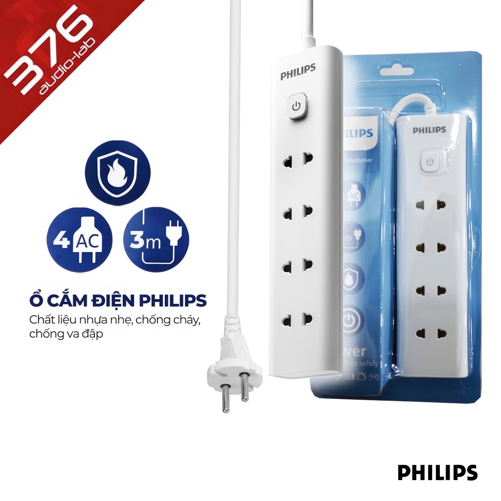 [CHÍNH HÃNG] Ổ Cắm Điện 3m PHILIPS (2500W) - 4 LỖ CẮM
