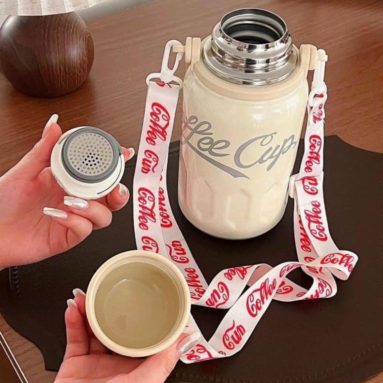 Bình giữ nhiệt Loda Coca 800ml, bình nước inox 316 nắp kín kèm lõi lọc trà-Bình nước giữ nhiệt Coca Cola inox 316 ,Bình