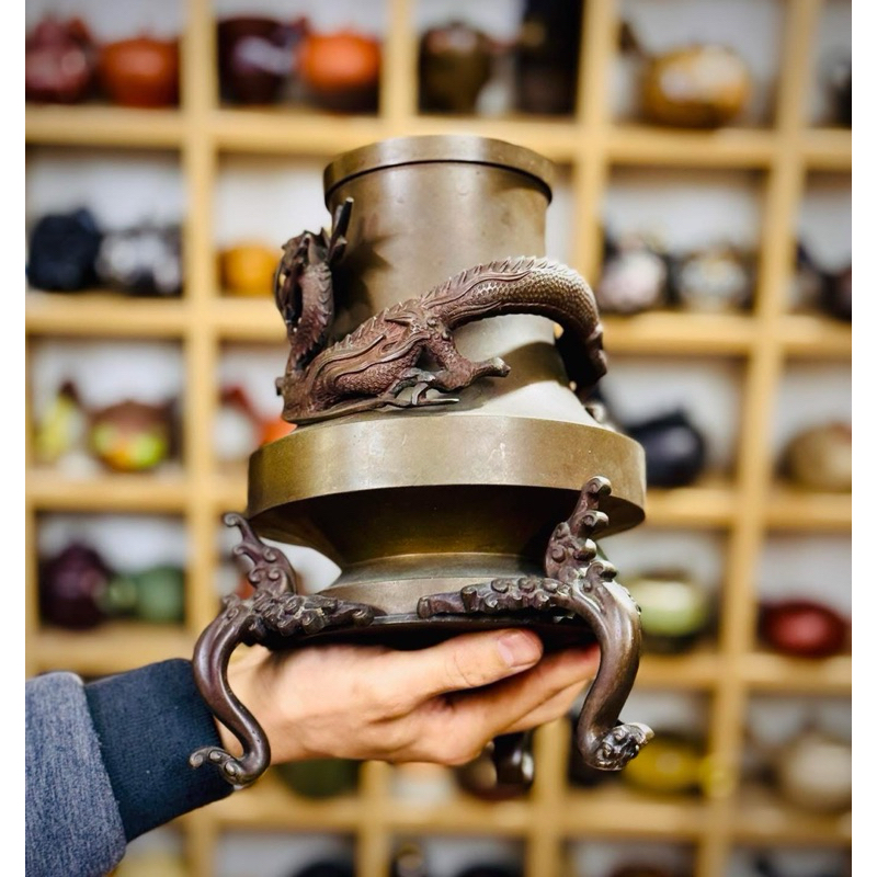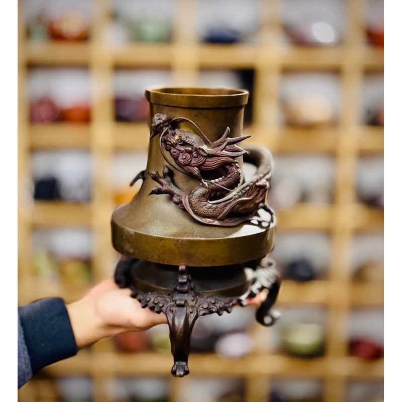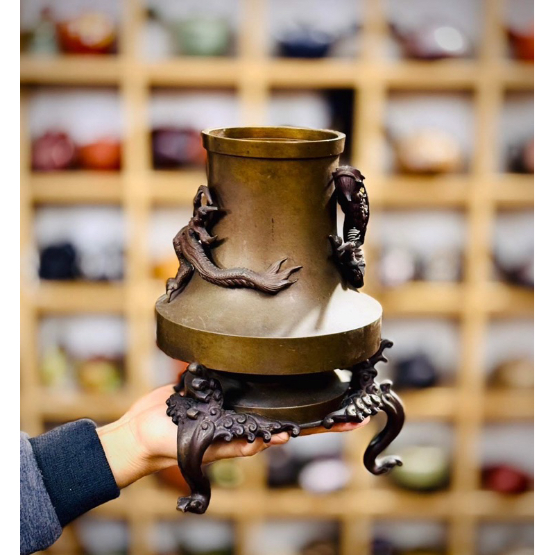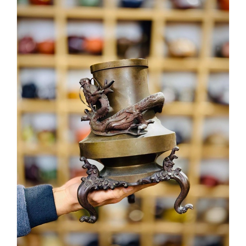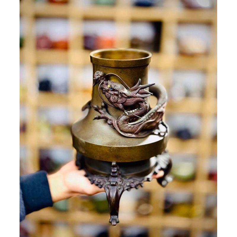 Bình đồng xưa rồng quấn thân 3D thần thái Nhật Bản