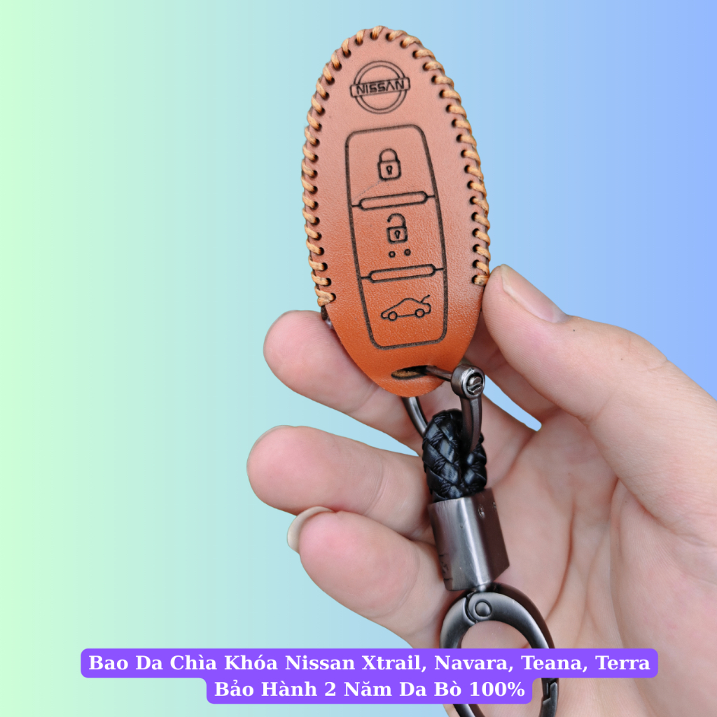 Bao Da Chìa Khóa Ô Tô Nissan Sunny X-Trail Navara Cao Cấp, Bọc Chìa Khóa Da Bò Thật, Ốp Chìa Sang Trọng Tinh Tế