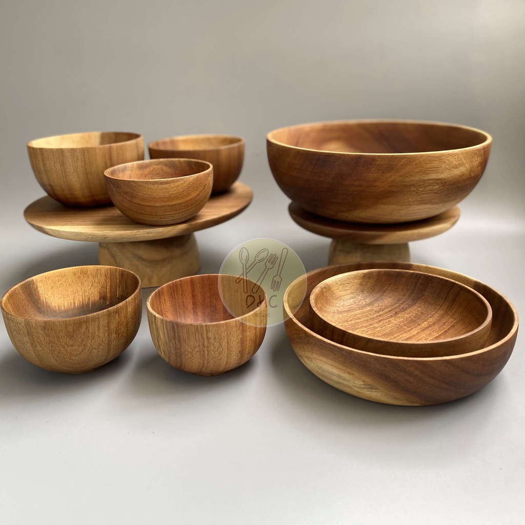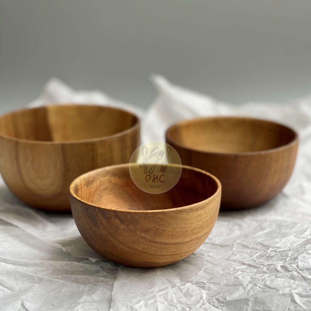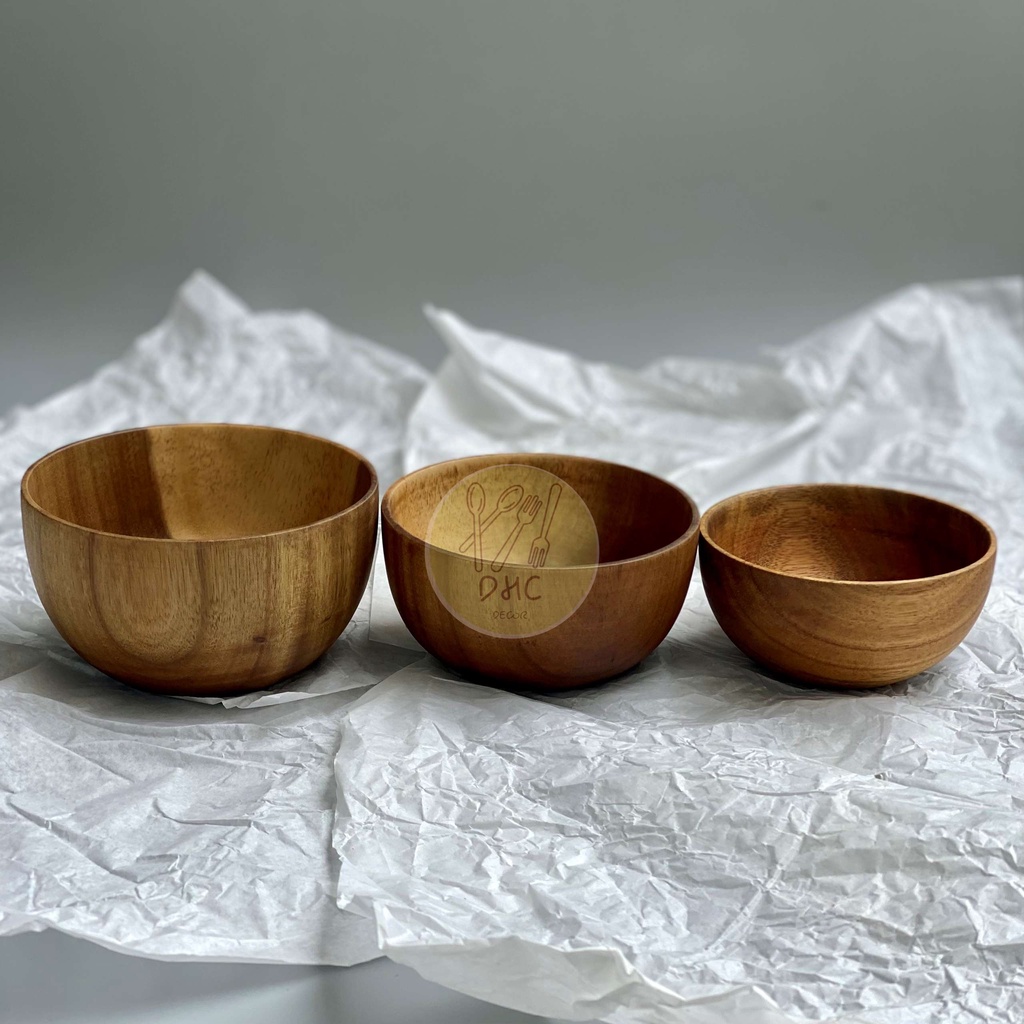 Chén, bát , tô , khay, đĩa tròn gỗ keo ăn dặm , ăn cơm đa dụng , an toàn thực phẩm của DHC Decor