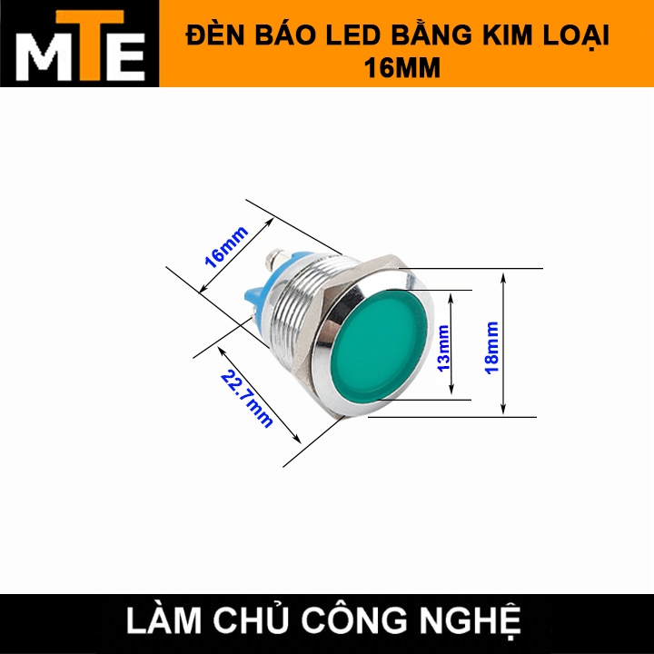 Đèn LED cảnh báo kim loại Phi 6, 8, 10, 12, 16, 22mm đèn báo nguồn, báo tín hiệu