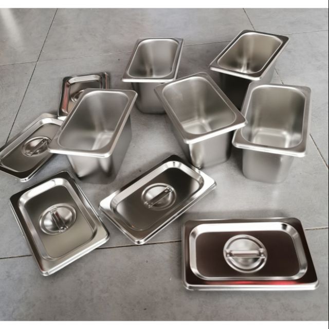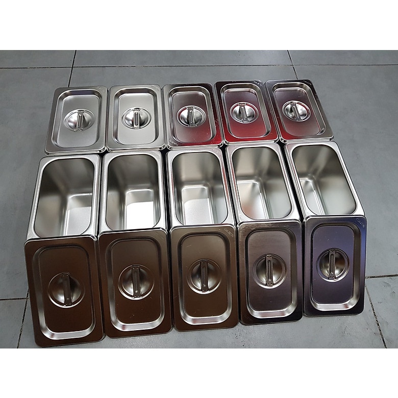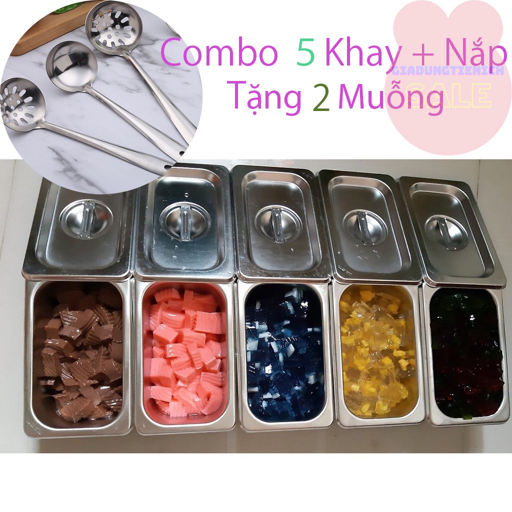 Combo 5 Bộ Khay Inox Đựng Thạch Trà Sữa, Topping GN 1/9 Các Size (Có Nắp) (COMBO 5)