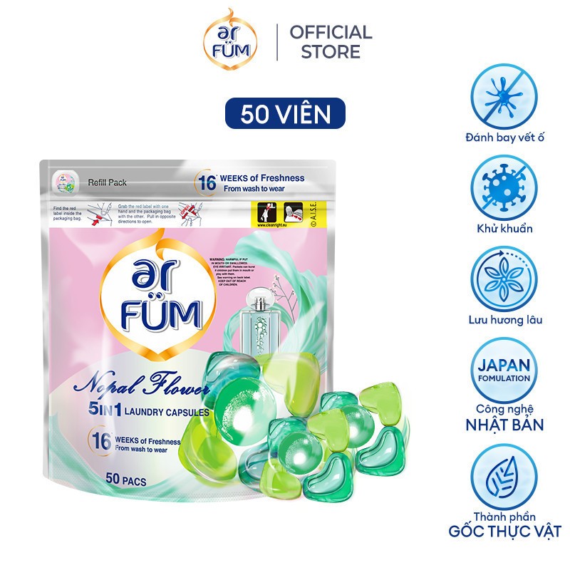 [MUA 1 TÚI TẶNG 1 HOP] Viên giặt xả arFUM 5in1, tinh dầu nước hoa thơm lâu 16 tuần, khử khuẩn 99% - (50v)