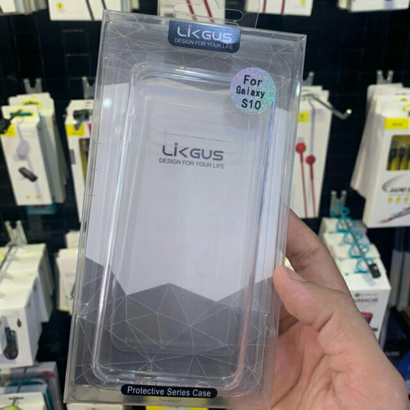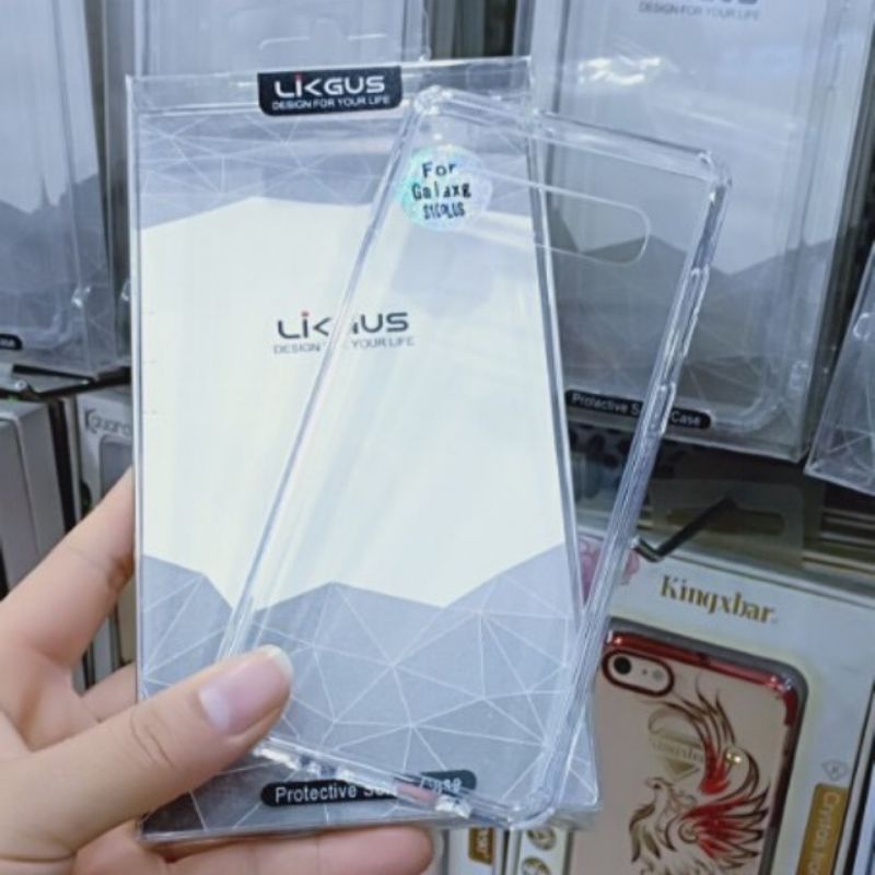 Ốp lưng kính viền dẻo cho Galaxy S10/ S10 Plus hiệu Likgus chống sốc ( Trong suốt )