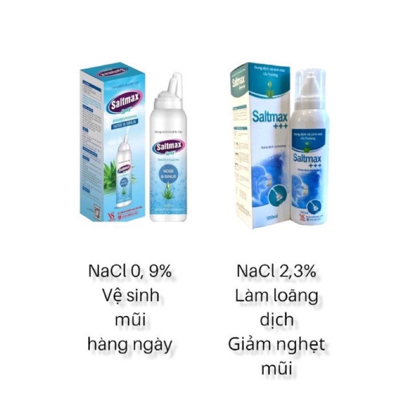 Bình xịt rửa mũi hàng ngày Saltmax Spay , Saltmax+++ 100ml, làm sạch chất nhầy, an toàn với phụ nữ có thai