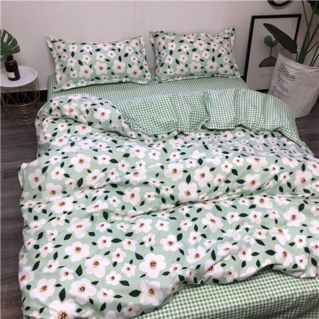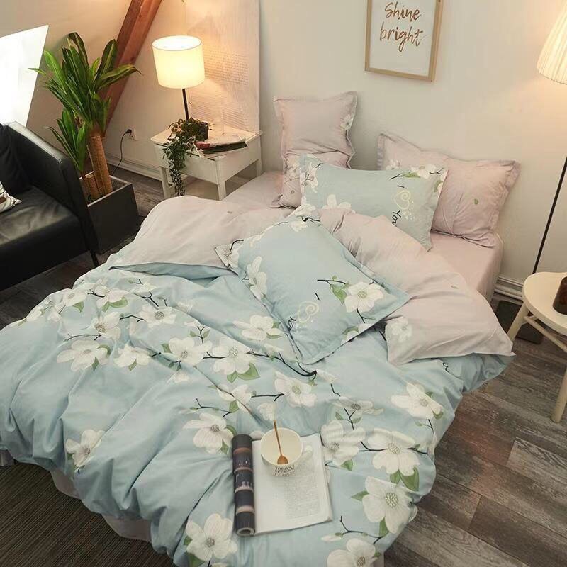 Bộ Drap Giường Vỏ Chăn 5 Món (Hình Thật) Chọn Kiểu Hoa Lá Cực Đẹp M2*2M-M4*2M- M6*2M-M8*2M