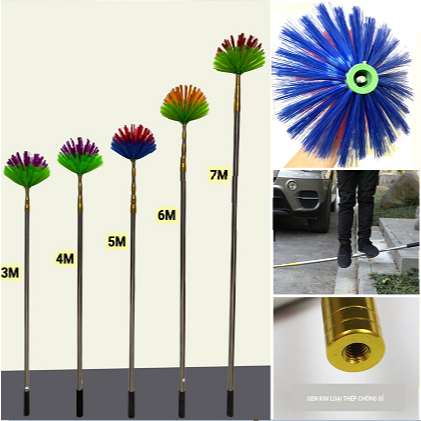 Gậy Chổi Dài 3M-9M Quét Trần Nhà, Quét Mạng Nhện Đầu Cán Inox 304 Cao Cấp Có Thể Rút Gọn 1m2-1m5