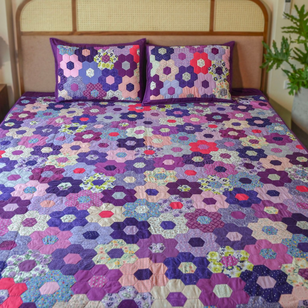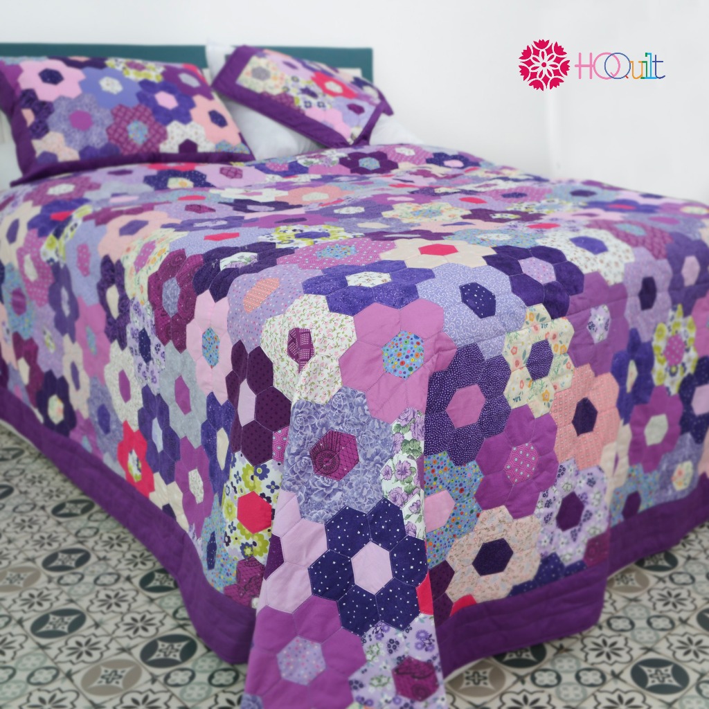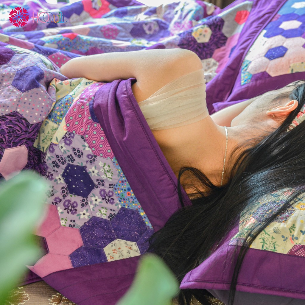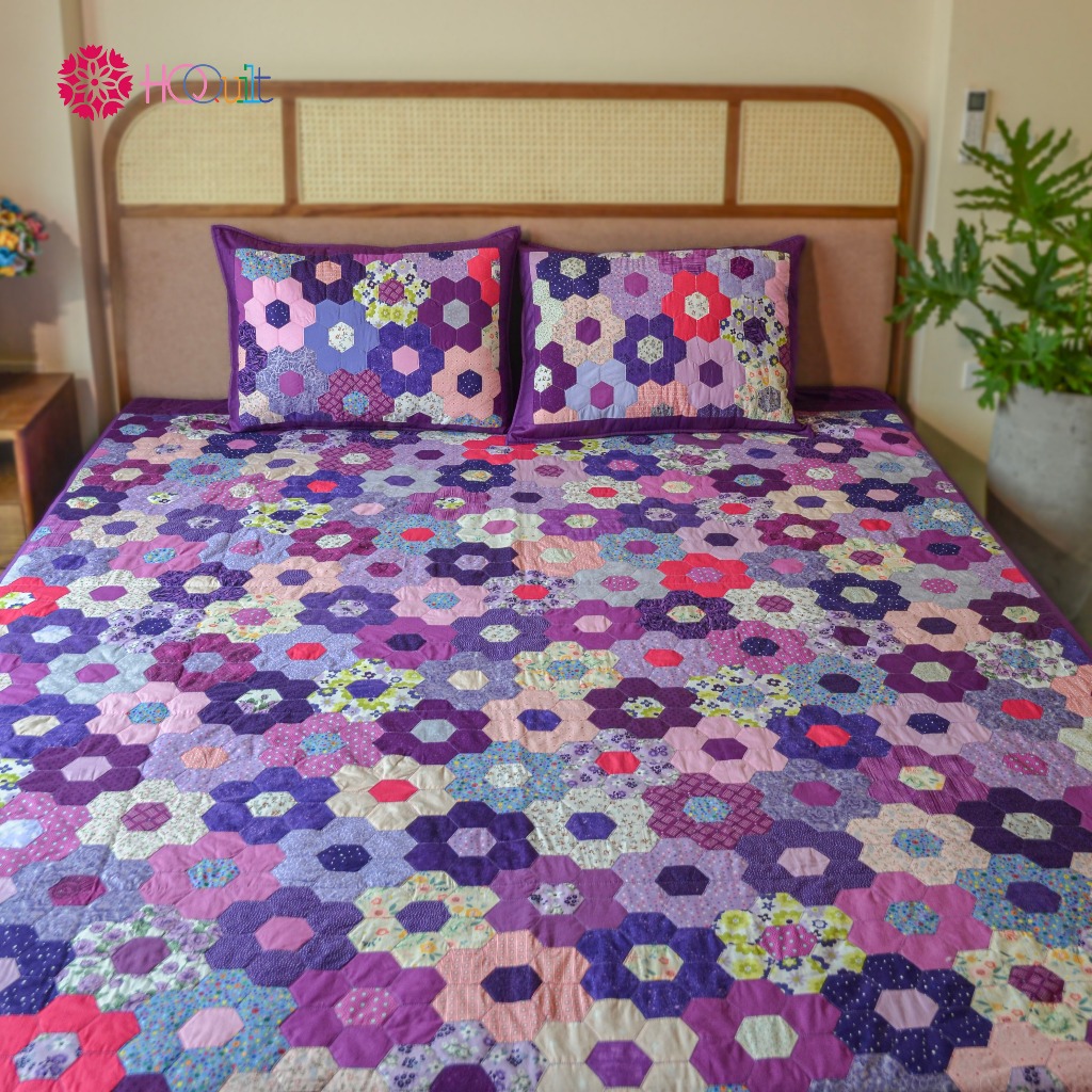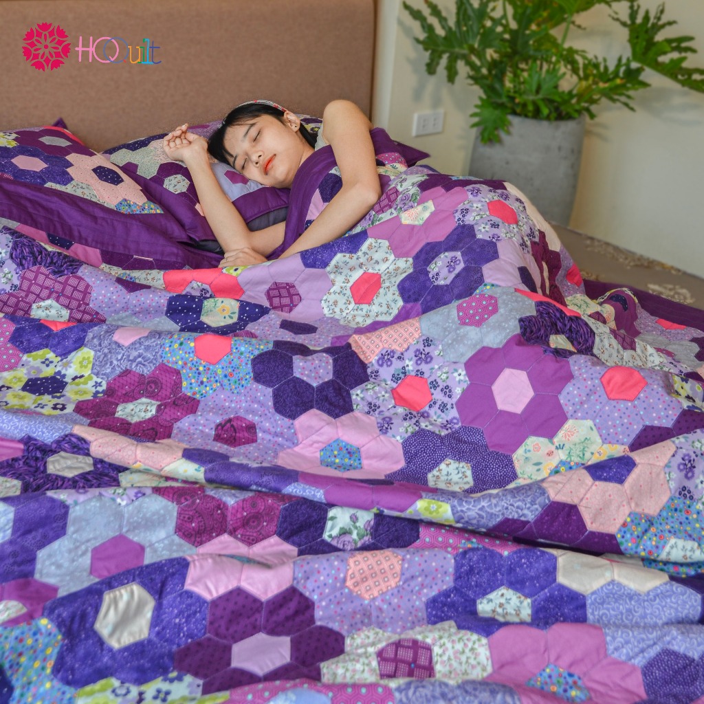 Chăn - Mền Quilt ,Mẫu Chăn Quilt Lục Giác Tím Ghép Vải Thủ Công | Chăn Handmade Phong Cách Trầm Tĩnh