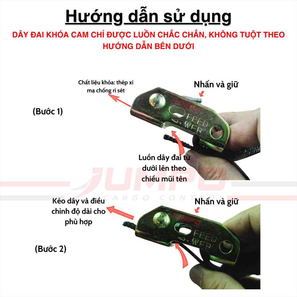 Dây đai tập gym, dây treo vòng calisthenic, - dây chằng hàng khóa cam 500kg bản 25x2m đầu khóa thép