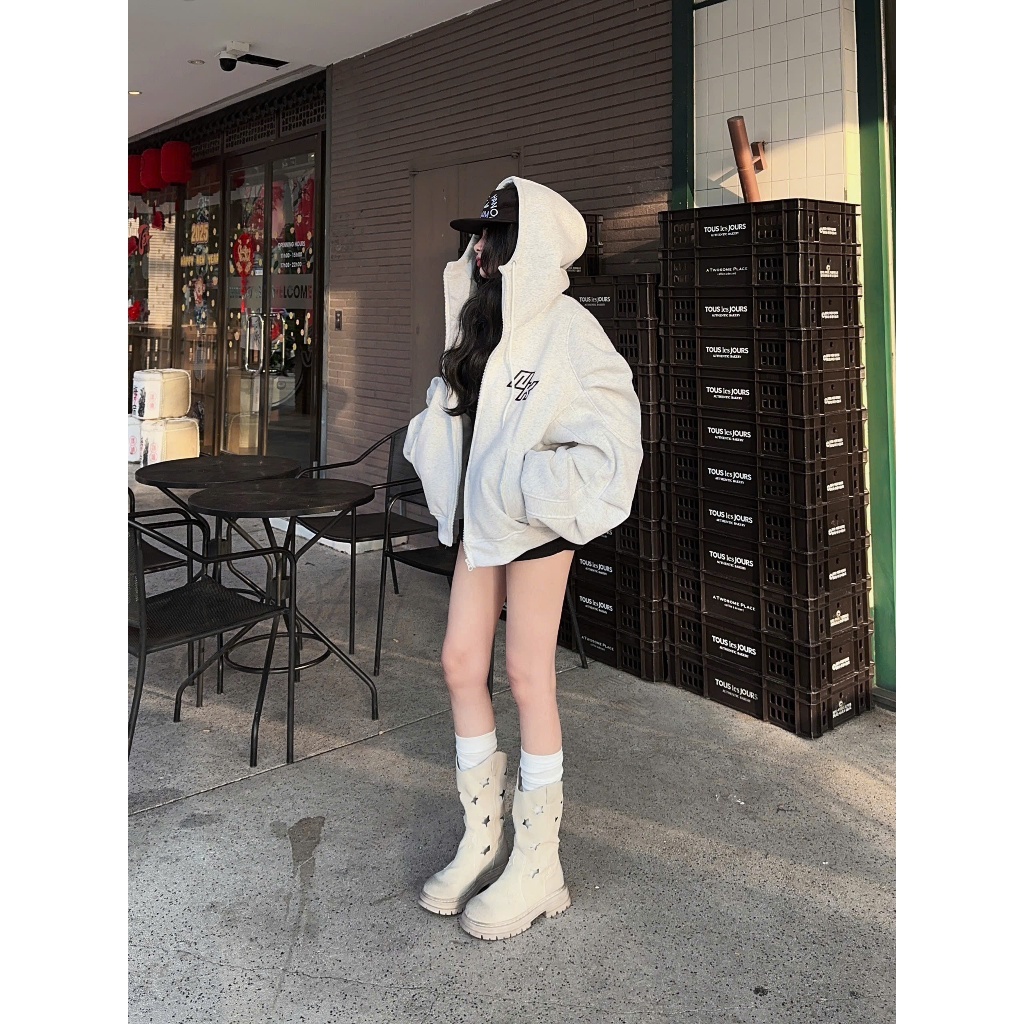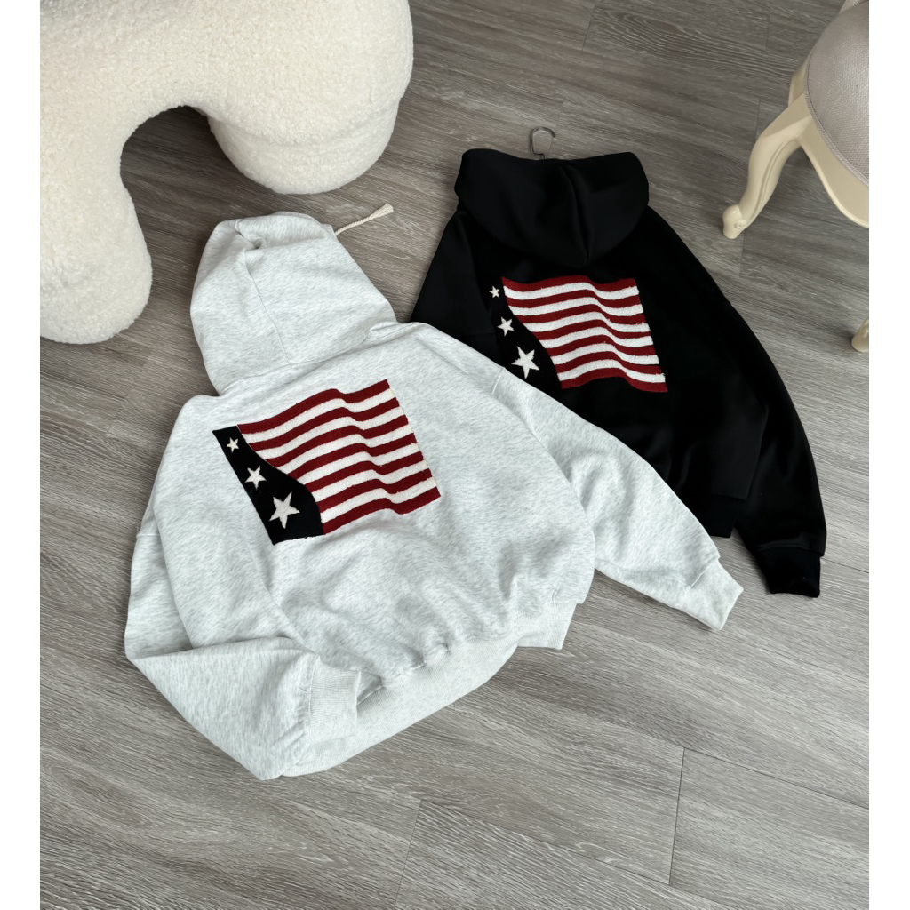 Áo Khoác Hoodie Zip Cờ Mỹ Rộng Boxy Chất Nỉ Chân Cua Thêu Xù Đẳng Cấp Thời Trang Hot Trend