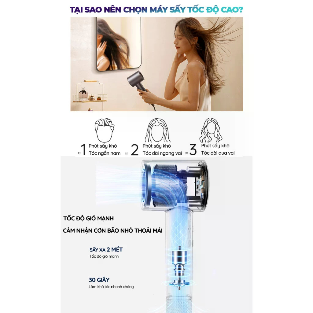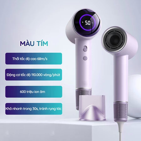 Máy Sấy Tóc Ion Âm Cao Cấp KAW Hypersonic 3000W, 2 Chiều Sấy Nóng Lạnh, Màn Hình Hiển Thị Nhiệt Độ