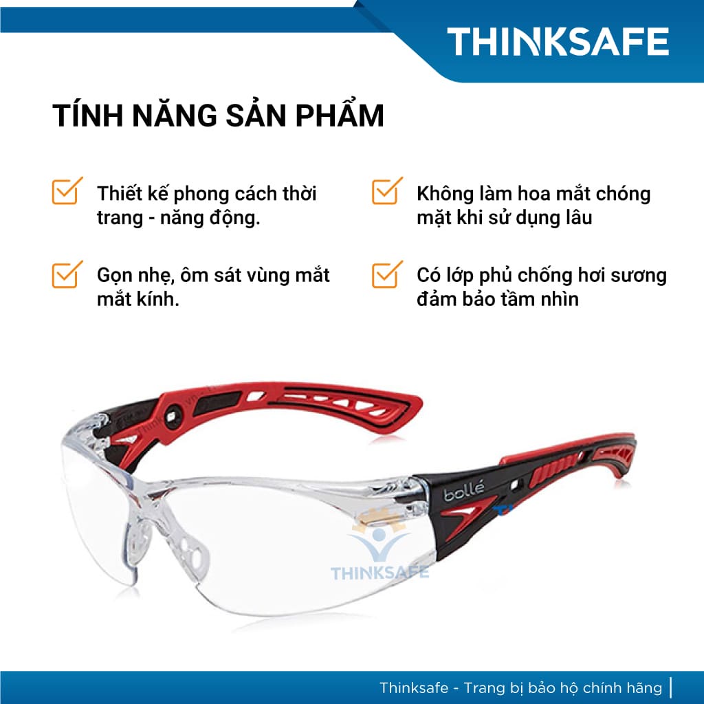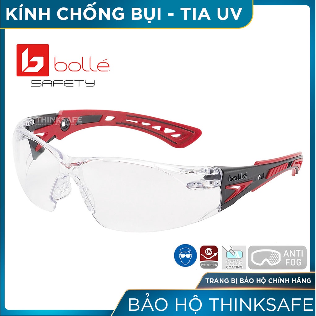Kính bảo hộ cao cấp Bolle Rush Plus chống bụi tia UV đi đường làm việc Kính chống bụi chính hãng - THINKSAFE