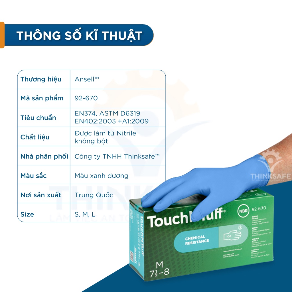 Găng tay cao su Ansell 92-670 chống dầu chống hoá chất, găng dai, ôm tay, găng công nghiệp - THINKSAFE