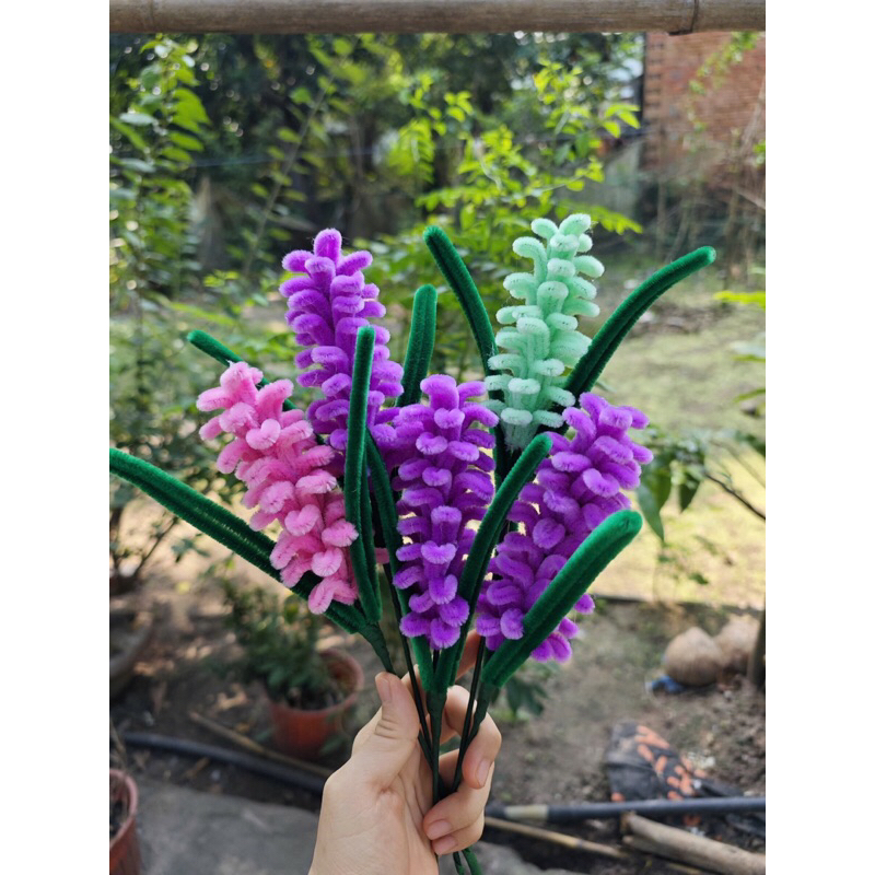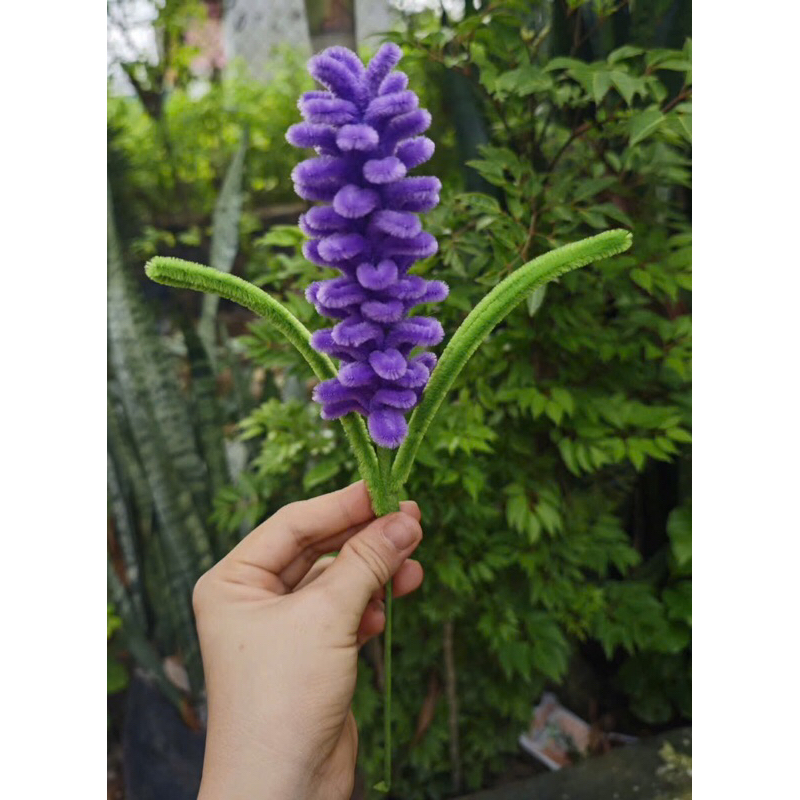 [Hoa làm sẵn] Cành hoa lavender 2 lá bằng kẽm nhung, cành hoa oải hương decor trang trí nhà cửa