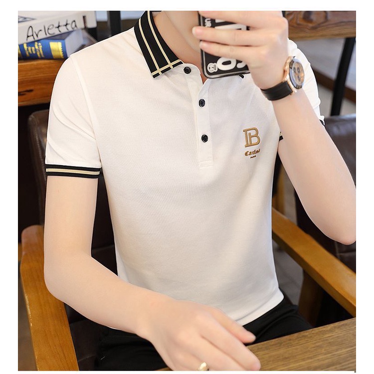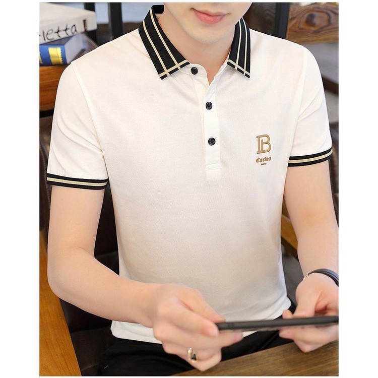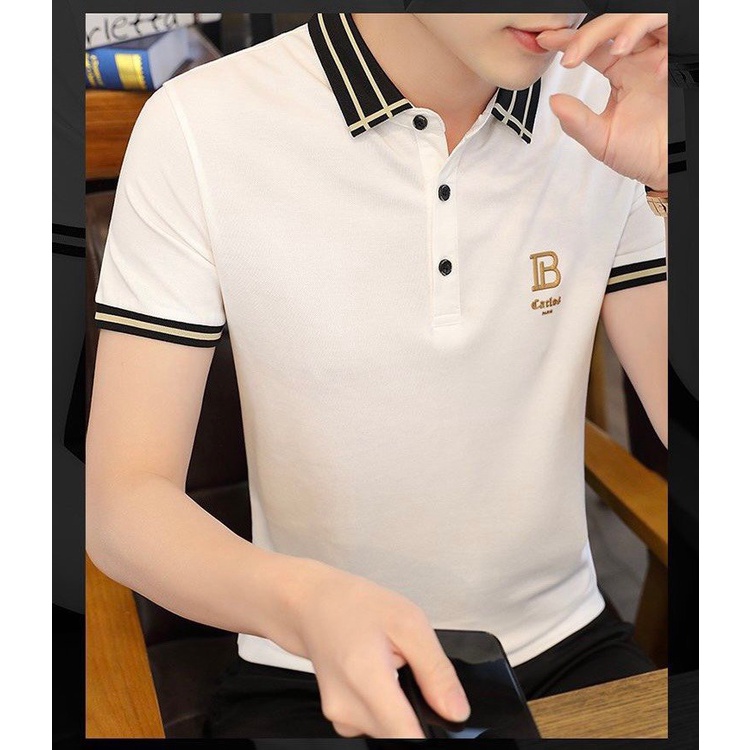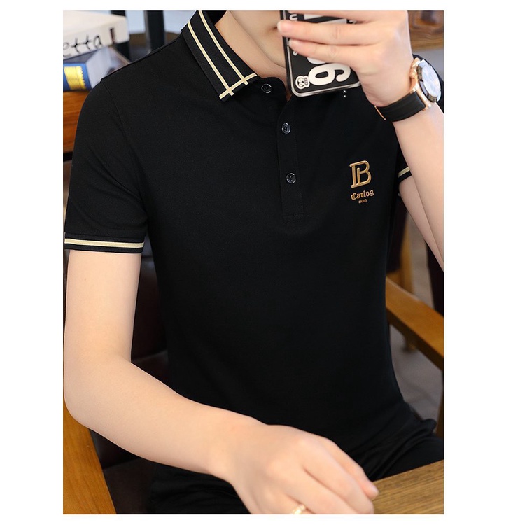 Áo Thun Nam POLO màu đen B thêu LOGO đẹp, chất vải co dãn, thoáng mát dễ chịu