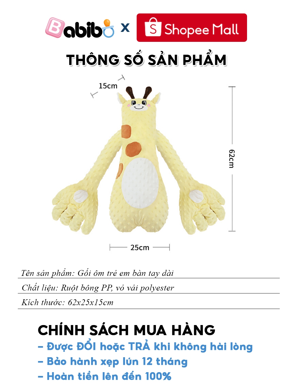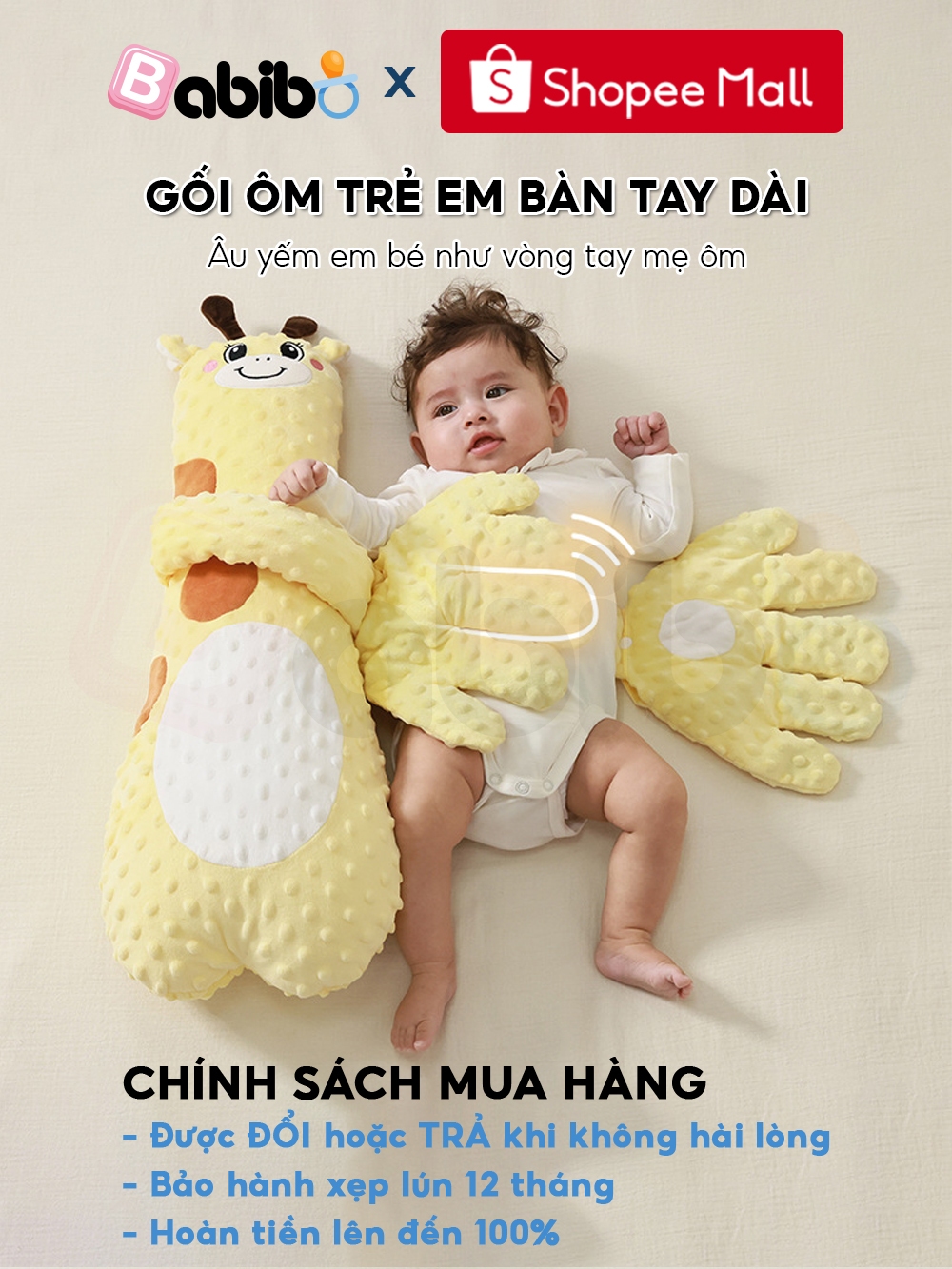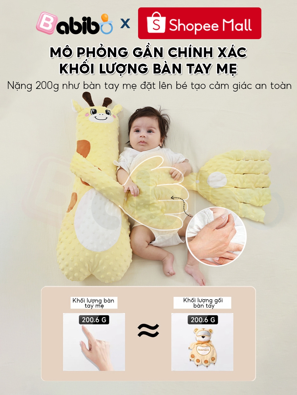 Gối ôm bàn tay vỗ mông cho bé BABIBO, giúp bé ngủ ngon, chống giật mình hiệu quả