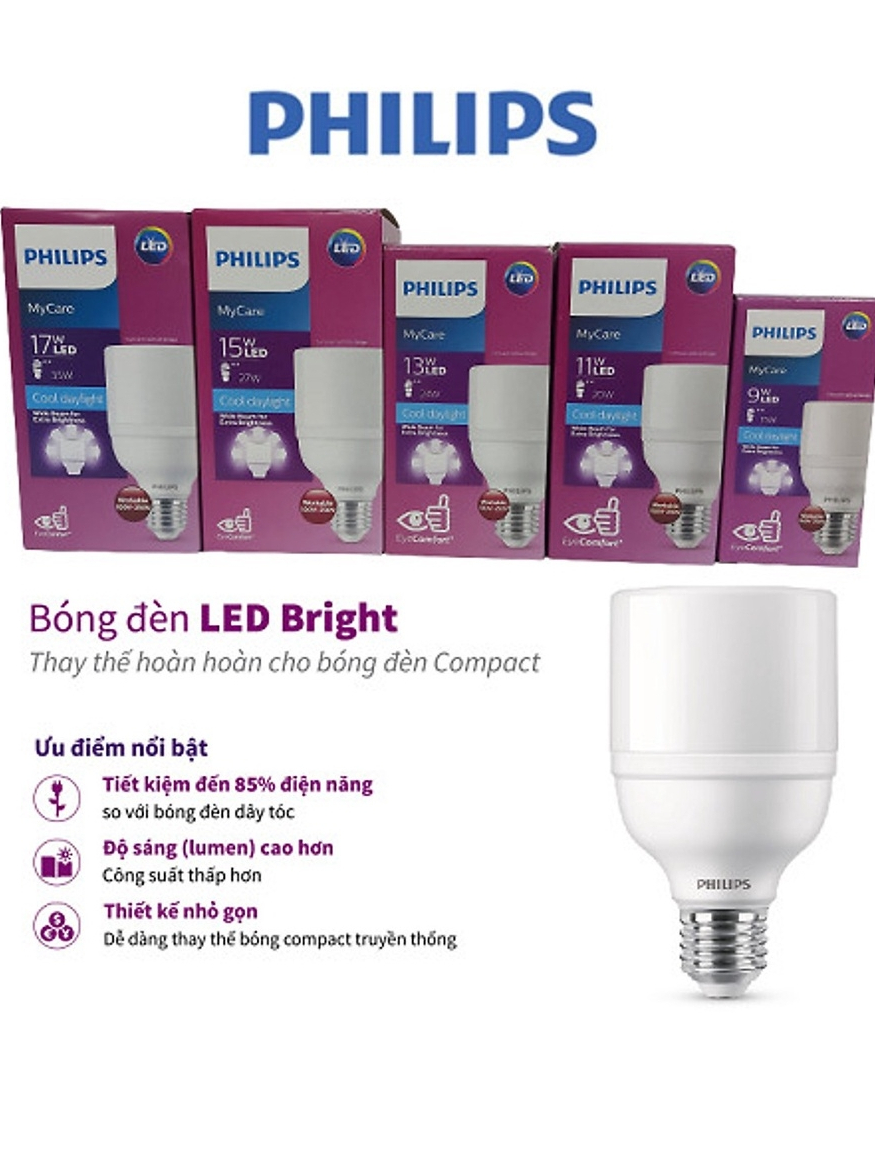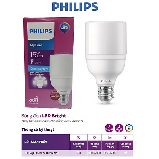 Bóng LED BRIGHT 15W E27 1CT/12 APR Philipss