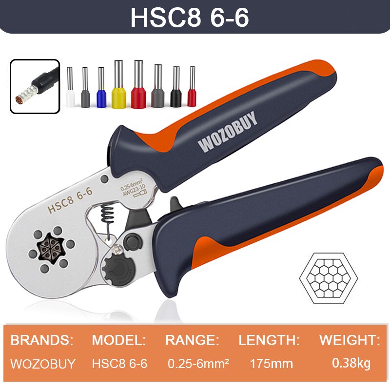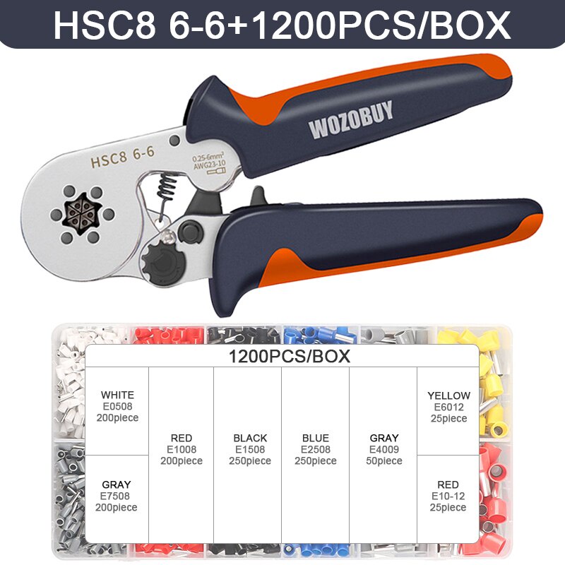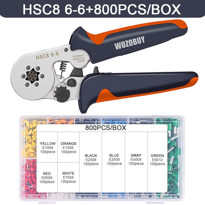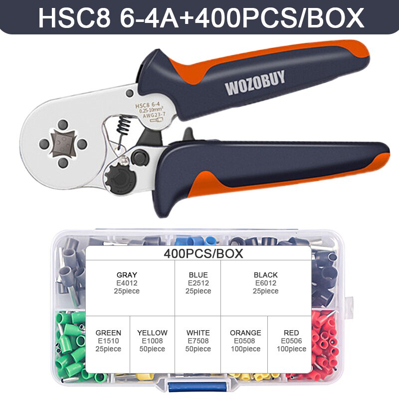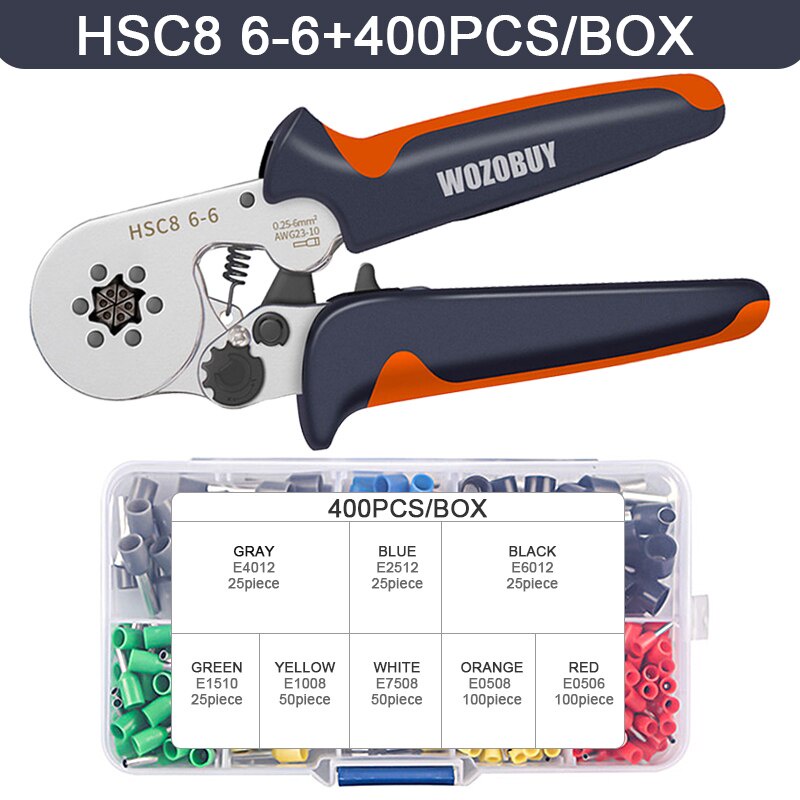 Set kìm uốn dây điện và hộp đầu nối WOZOBUY HSC8 6-4A 0.25-10mm2 23-7AWG 6-6 0.25-6mm2 mini tiện lợi