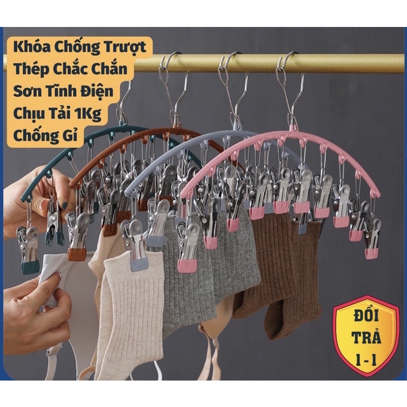 [10 Kẹp] Móc Treo Quần Áo Đồ Lót Tất Vớ Chống Trượt Chống Gió, Có Khóa Chống Rơi Bằng Thép Không Gỉ