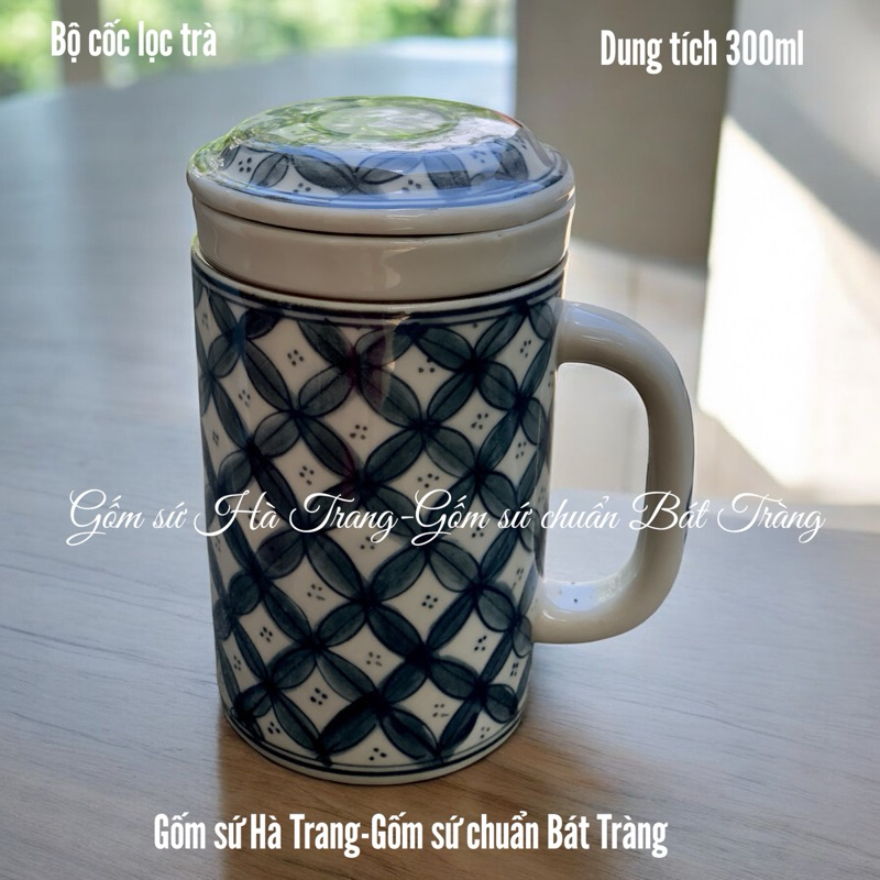 Cốc lọc trà gốm sứ Bát Tràng cao cấp vẽ thủ công hoạ tiết hoa chanh