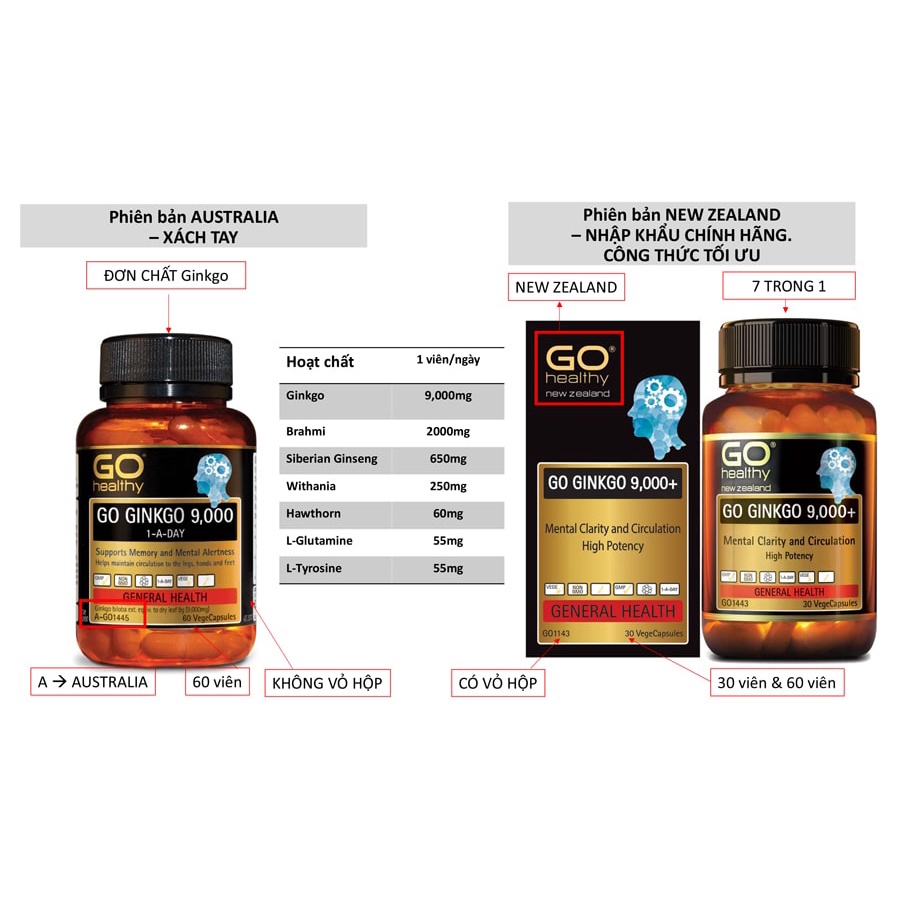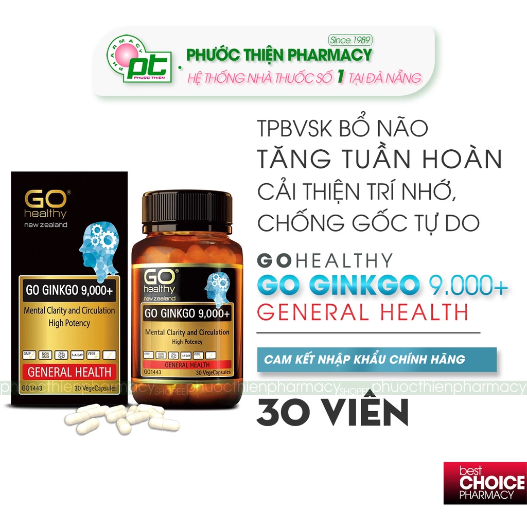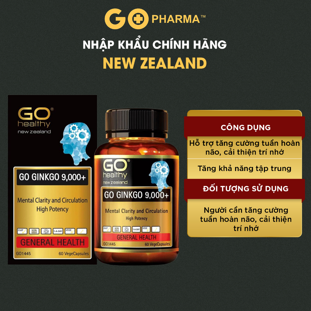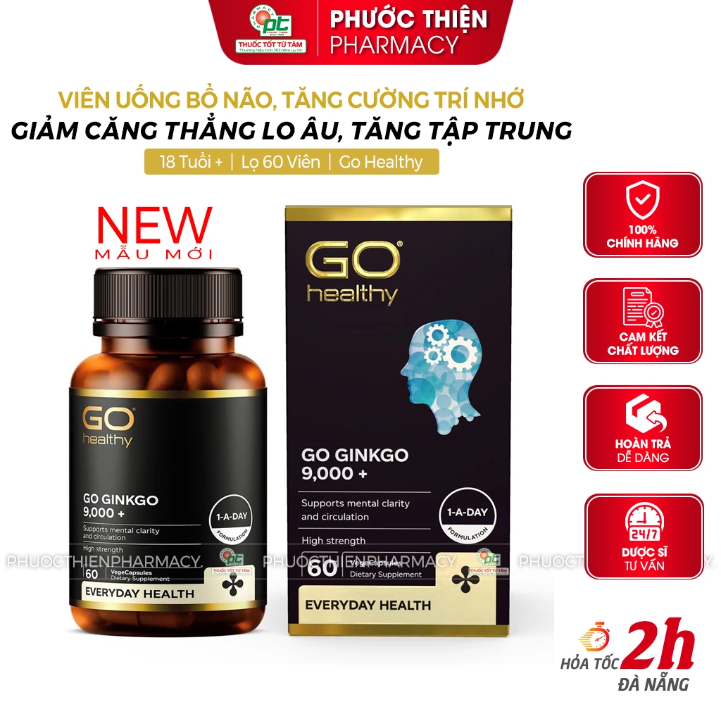 Bổ não GO Healthy Ginkgo 9000+ hoạt huyết, tăng trí nhớ tập trung, giảm căng thẳng, ngủ ngon