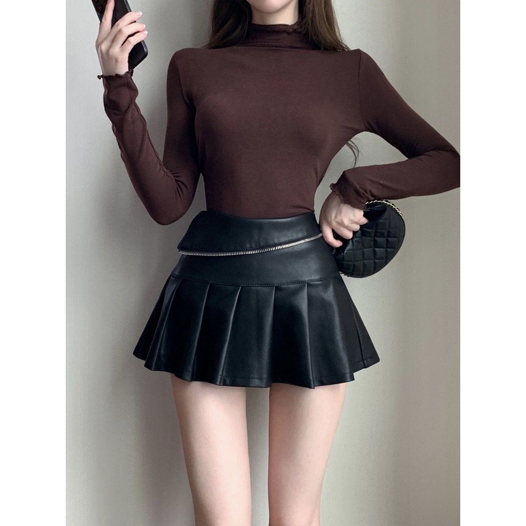Váy Da Pu Xếp Ly Váy Nữ Đơn Giản Phù Hợp Với Mùa Thu Đông Phong Cách Mới Cao Cấp Ôm Hơn Nhìn Tất Cả Trận Đấu Váy Chữ A Nóng