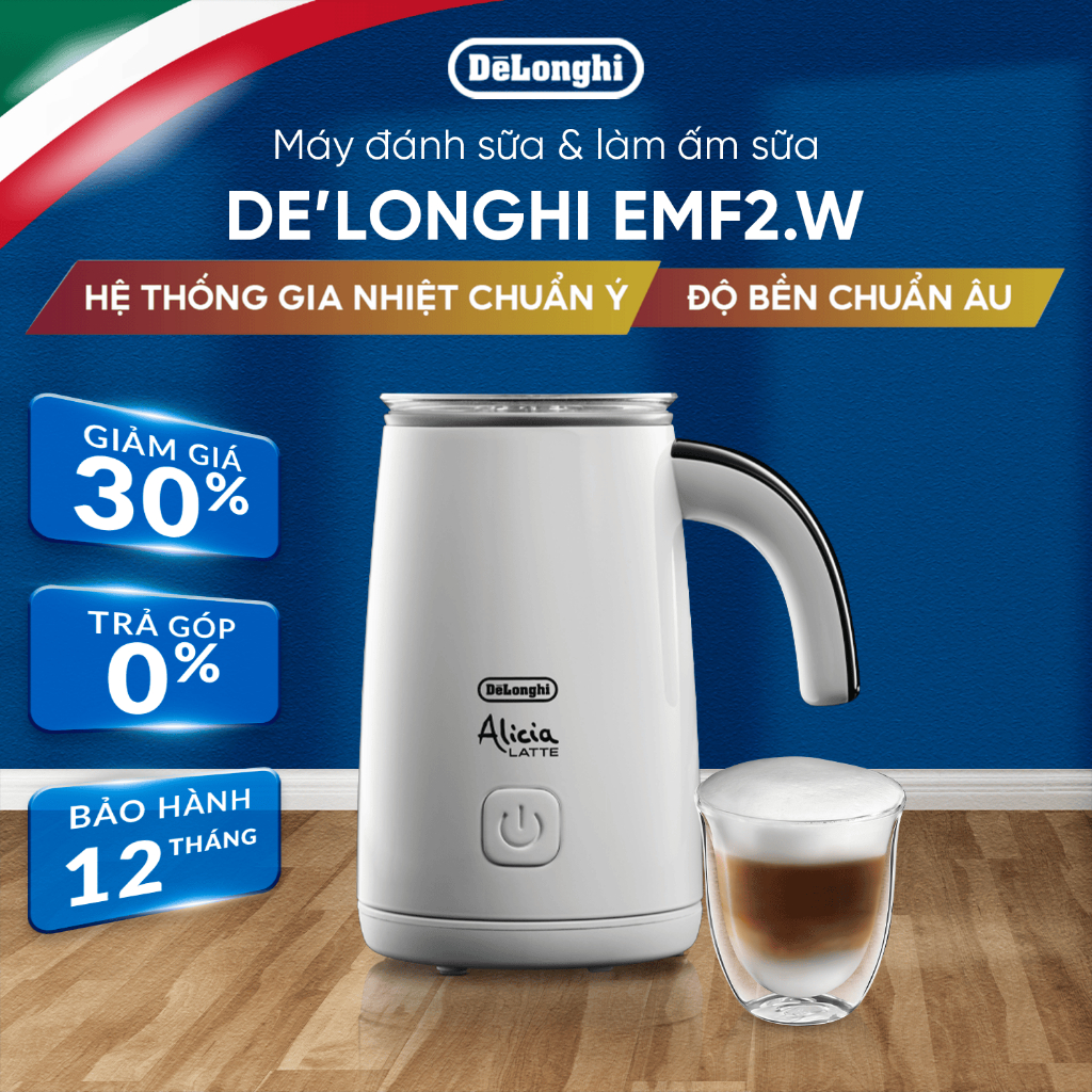 Máy Đánh Sữa DeLonghi Alicia Latte EMF2 (BK/W) │Tạo Bọt Sữa Mịn│Pha Cappuccino, Latte Tại Nhà