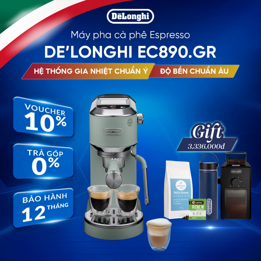 [TẶNG MÁY XAY] Máy pha cà phê Espresso DeLonghi Dedica Duo EC890 (M/GR/WI) – Espresso, 2 Tách, Cold Brew, Đánh Sữa