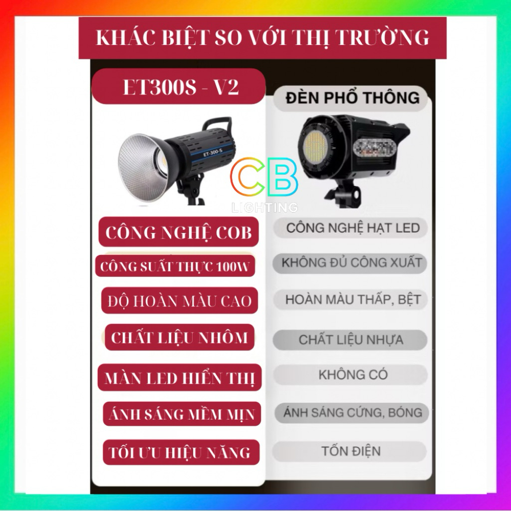 Đèn ET-300S (et300s) Mark 2 - V2 ( et300pro ) Chuyên Live - Chụp Ảnh Chỉnh Nhiệt Độ Màu 2700-6500K