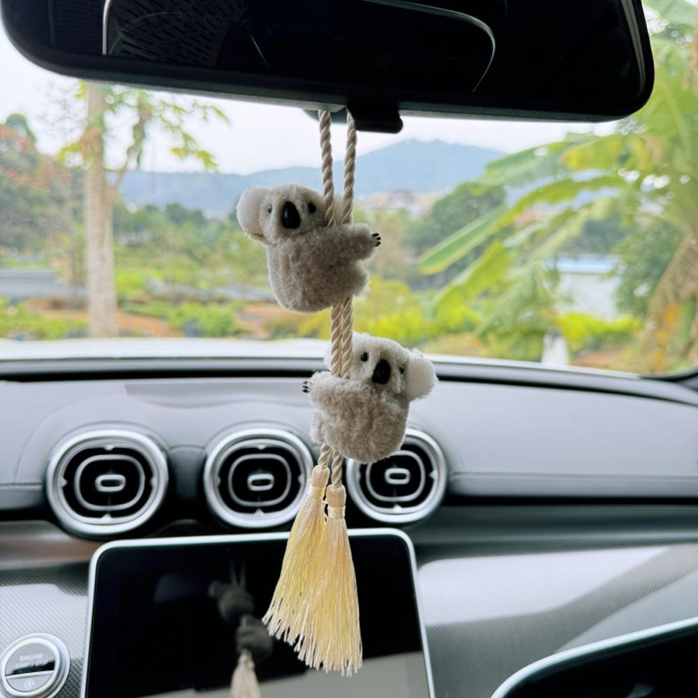 OPENMALL Treo Xe Trang Trí Sáng Tạo Koala Cao Cấp Gương Chiếu Hậu Trang Trí Với Tua Rua Phụ Kiện Nội Thất Ô Tô Sang Trọng Koala F6J5