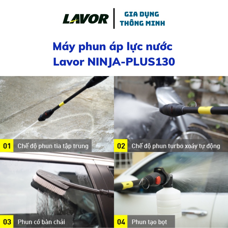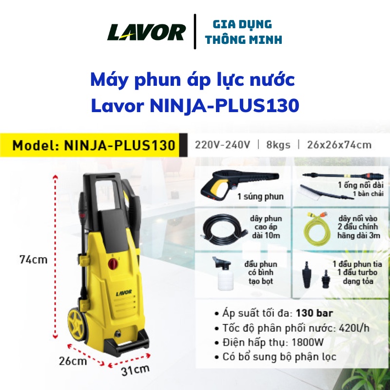 Máy phun rửa áp lực cao Lavor Ninja plus 130 mô tơ chổi than,áp suất tối đa 130 bar đánh bay vết bẩn